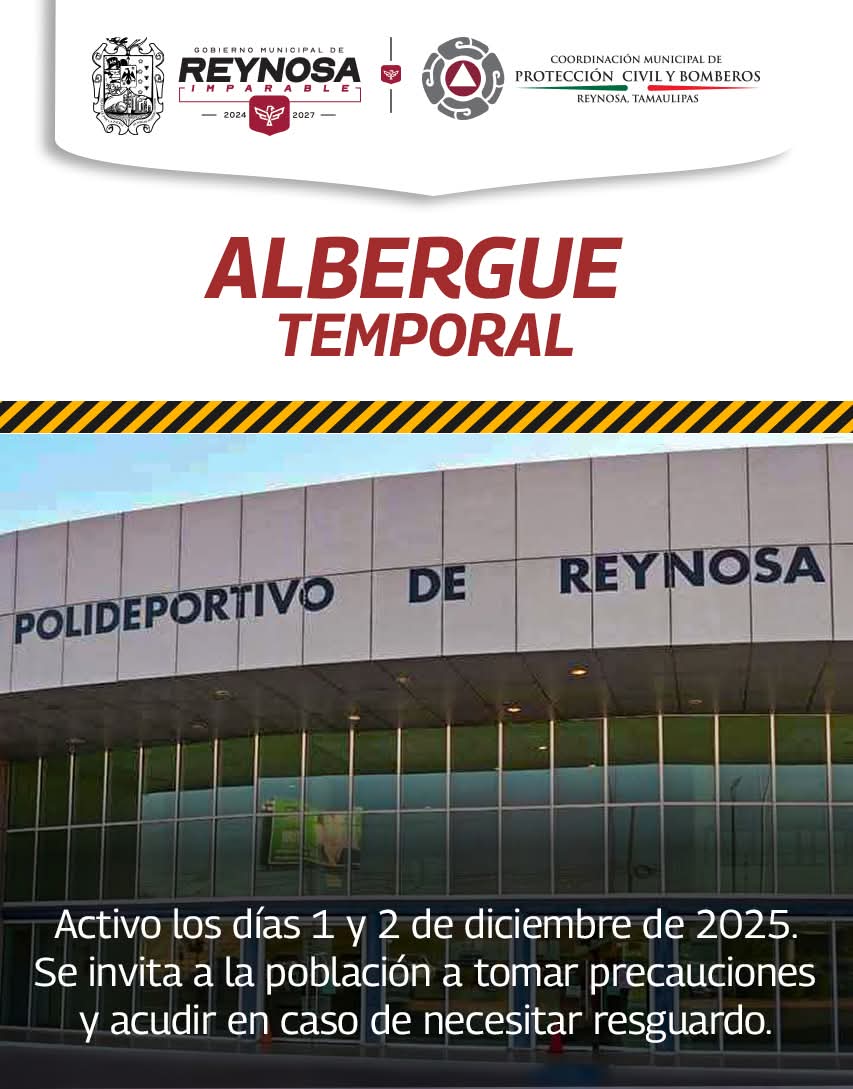 El Presidente Municipal de Reynosa, Carlos Peña Ortiz, activó el Albergue Temporal en las instalaciones del Polideportivo con el objetivo de brindar resguardo cálido a personas sin hogar y a quienes se encuentren en situación vulnerable ante el marcado descenso de temperaturas que afecta a la región.
