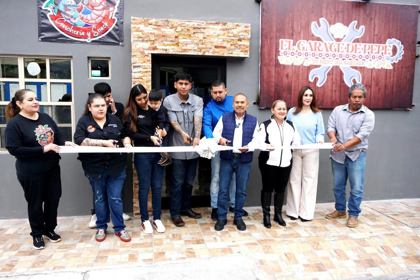 MIGUEL ALEMÁN, TAM. – Al encabezar este lunes el corte de listón inaugural de “El Garage de Pepe” y de la “Cevichería y Snack Los 2 Compadres”, el Alcalde Biol. Ramiro Cortez Barrera deseó el mayor de los éxitos a los jóvenes emprendedores.