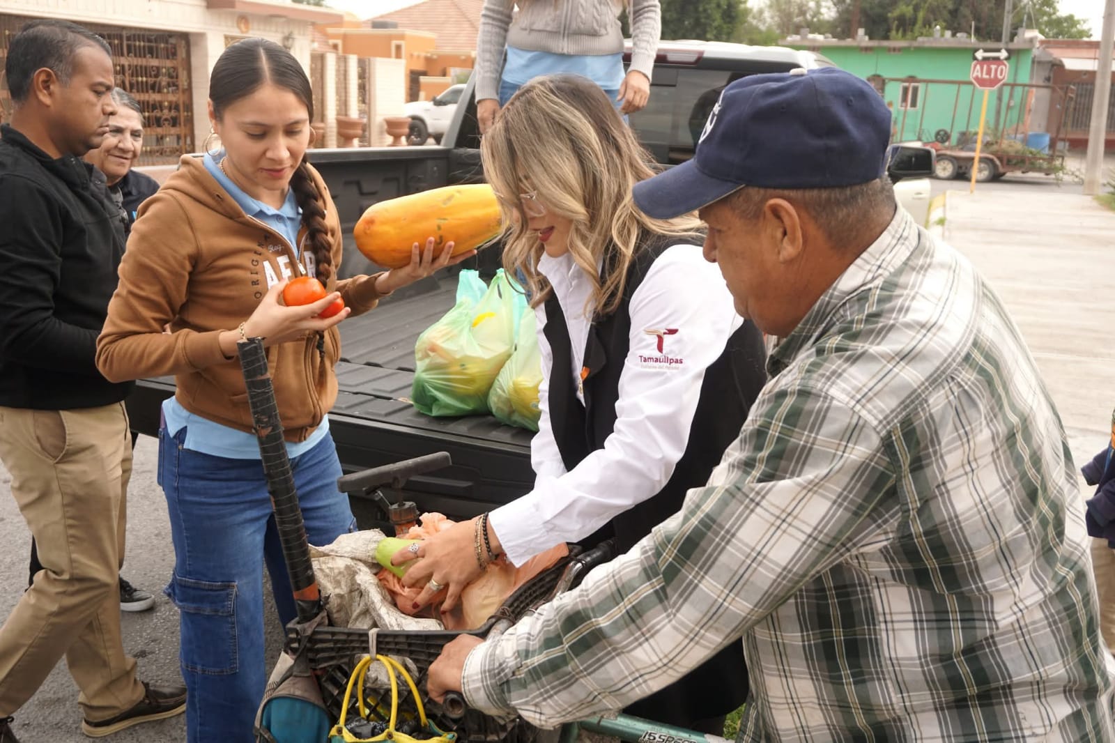 MIGUEL ALEMÁN, TAM. – El Gobierno del Biol. Ramiro Cortez Barrera, a través de la Secretaría de Bienestar Social, volvió a distribuir paquetes de verduras entre las familias más necesitadas en las colonias Barrera e Independencia.