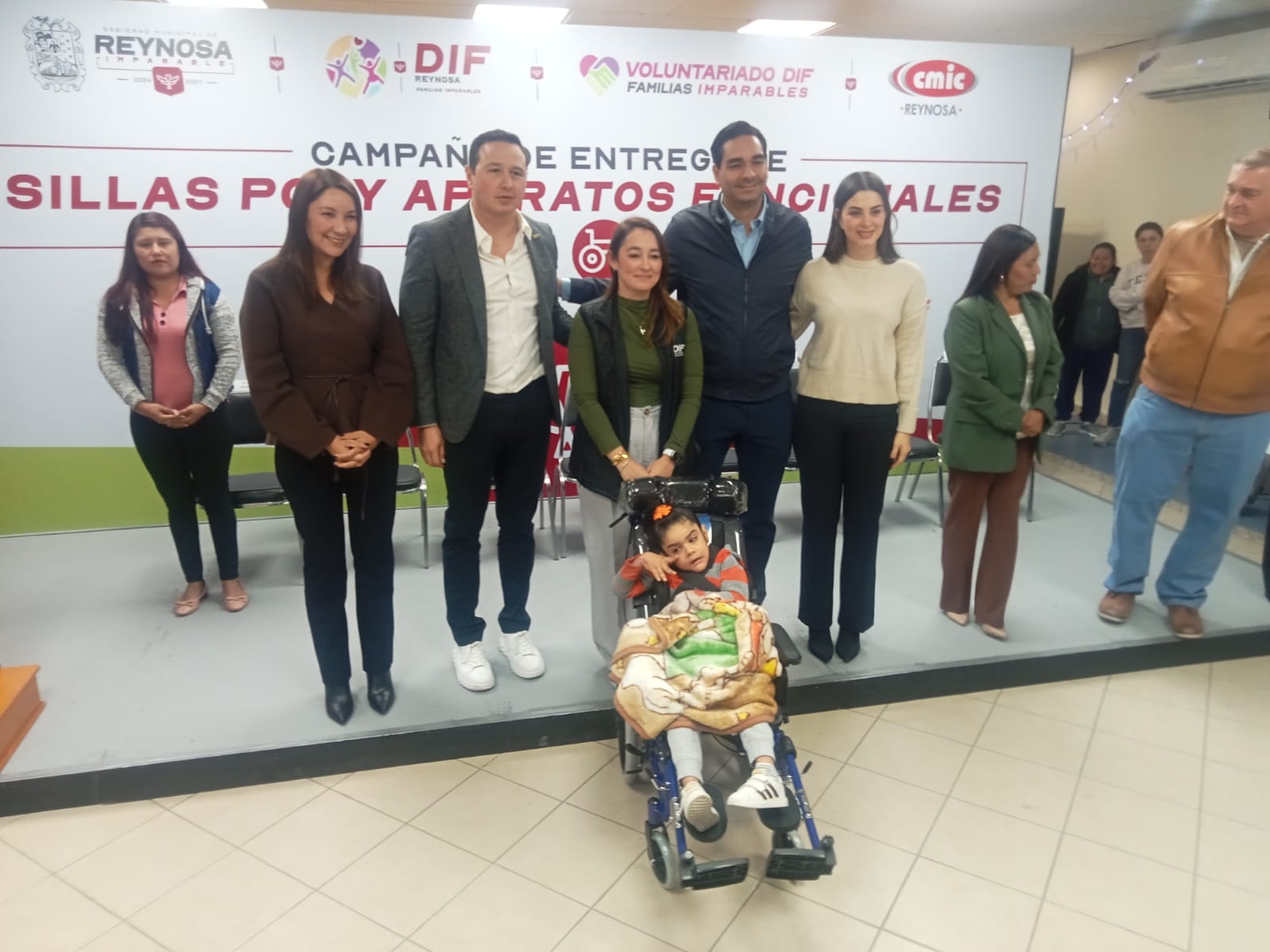 El Presidente Municipal de Reynosa, Carlos Peña Ortiz, encabezó la mañana de este miércoles la segunda entrega de sillas PCI y aparatos funcionales de 2025, un programa del Sistema DIF Reynosa que busca mejorar la movilidad, autonomía y calidad de vida de niñas, niños y jóvenes con discapacidad.