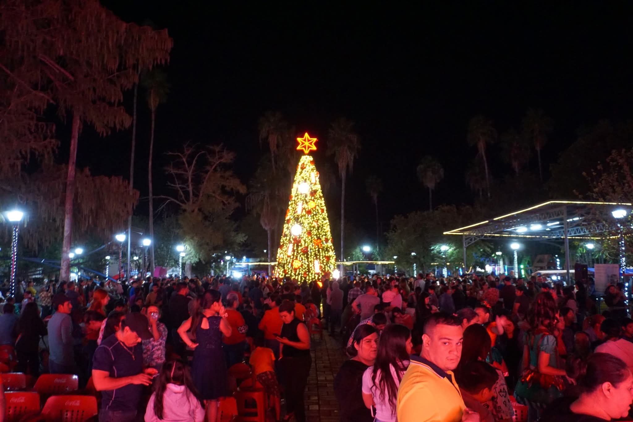 MIGUEL ALEMÁN, TAM. – En medio de un ambiente festivo y acompañado de su familia, integrantes del Cabildo y funcionarios municipales, el Alcalde Biólogo Ramiro Cortez Barrera encabezó el tradicional encendido del Pino Navideño en la explanada de la Presidencia Municipal, evento que reunió a cientos de familias para dar inicio formal a las celebraciones decembrinas.