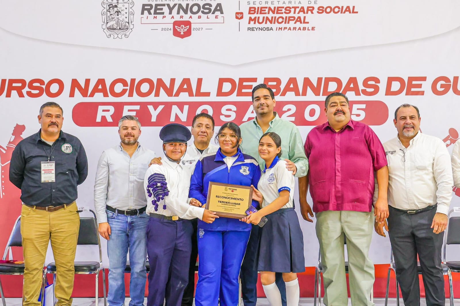 El Alcalde Carlos Peña Ortiz presidió el Concurso Nacional de Bandas de Guerra 2025, celebrado en esta ciudad, con la presencia de Moisés Salas Ortega, presidente de la Federación Mexicana de Bandas de Guerra y la participación de equipos en categorías Primaria, Secundaria, Bachillerato y Libre.
