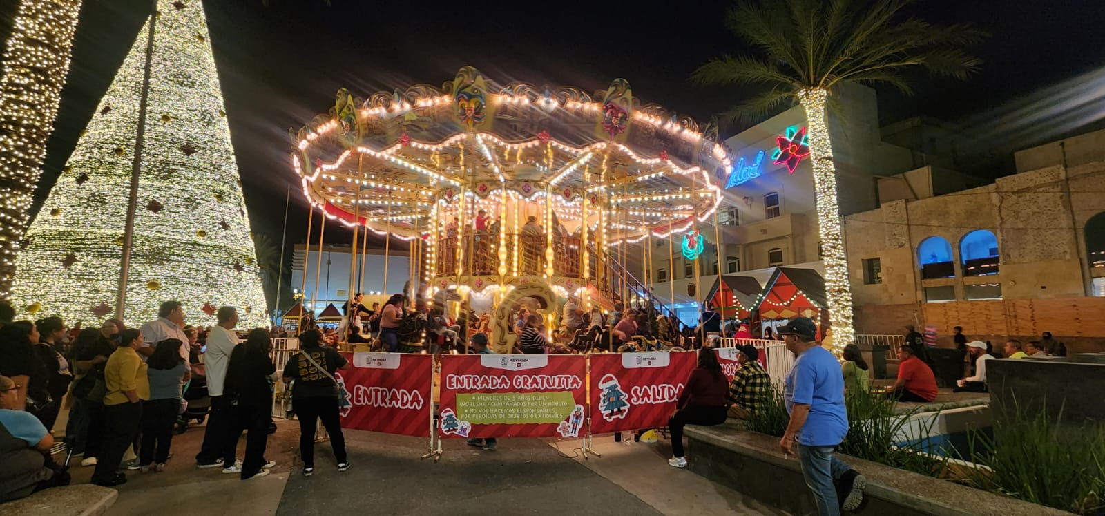 Disfruta de un día lleno de magia y diversión con tus seres queridos, con actividades como: Foto con Santa, gratuita; Carrusel Infantil Navideño, con horario de lunes a jueves de 11:00 A. M. a 3:00 P. M. y de 4:00 P. M. a 8:00 P. M., y de viernes a domingo de 12:00 P. M