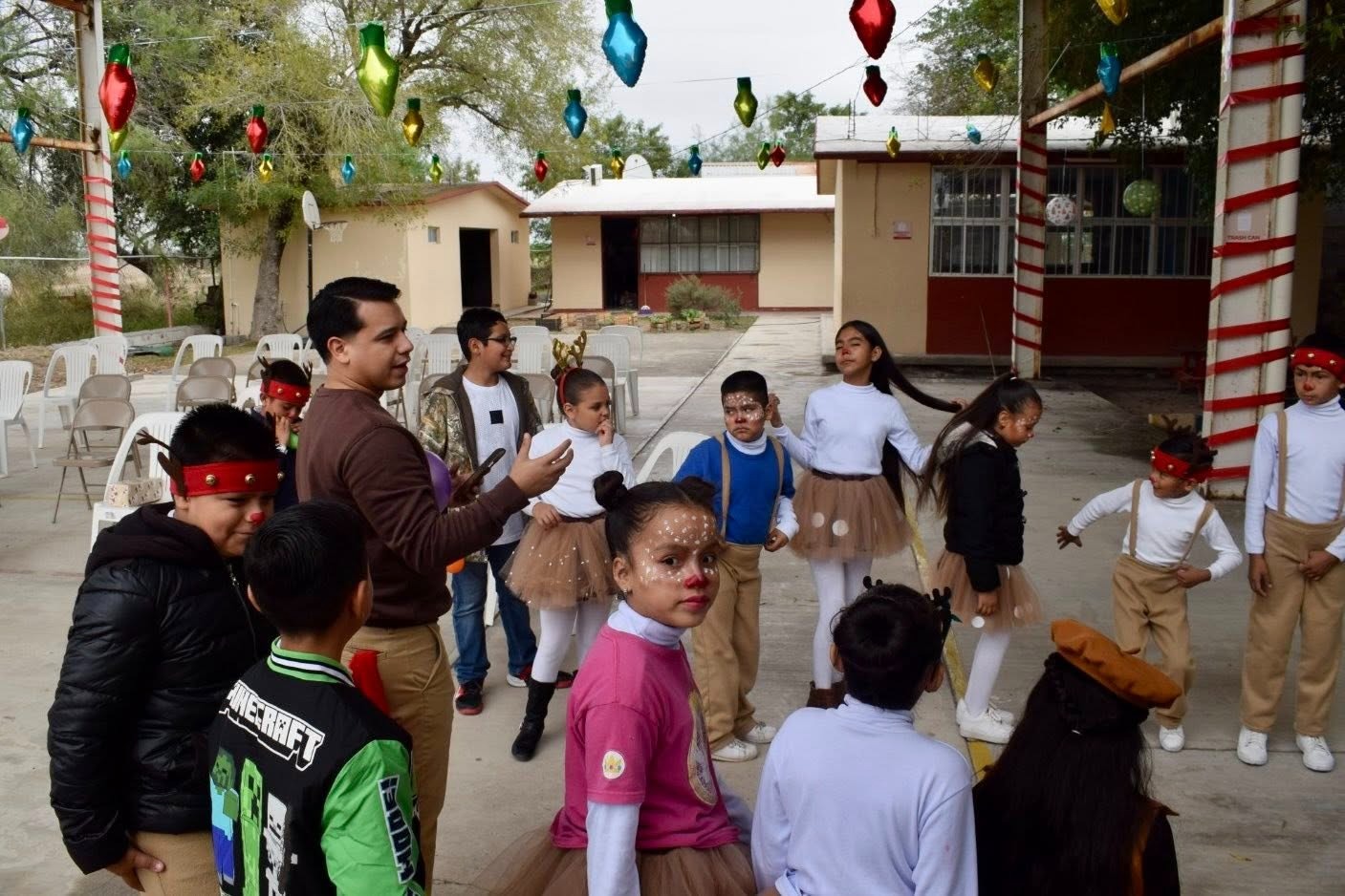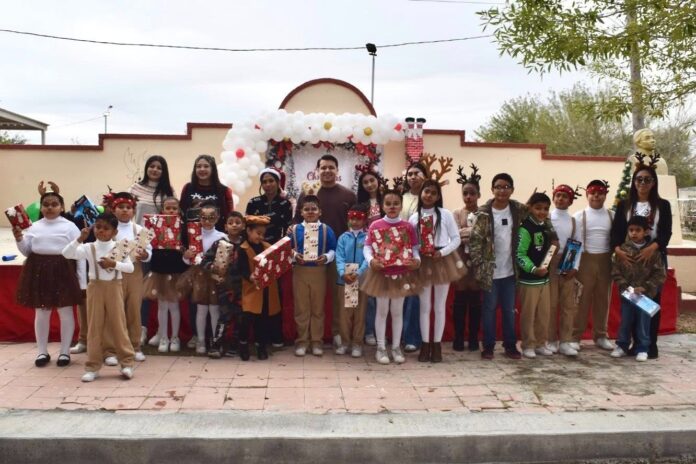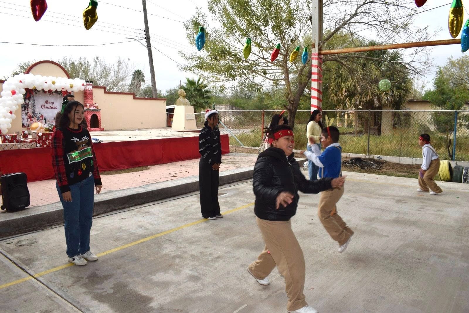 Gustavo Díaz Ordaz, Tam.- En el marco de una fresca mañana, se llevó a cabo una amena convivencia navideña, en la que el Delegado Regional del Injuve Tamaulipas Ing Irving Treviño Mendoza, acompañado de las chicas del Voluntariado Misión Tamaulipas, llevaron alegría y sonrisas a las y los alumnos de la primaria Ignacio Zaragoza del Poblado Villarreales.