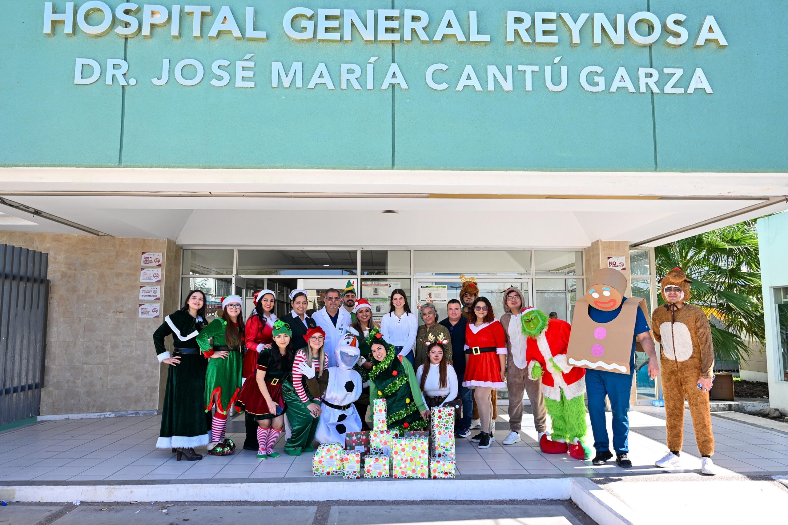 En el marco de la temporada navideña, la Presidenta del Voluntariado DIF-Reynosa, Alejandra Yelitza Garza, realizó una visita al Hospital General para llevar juguetes y momentos de alegría a niñas y niños que se encuentran en el área de pediatría, con el objetivo de fortalecer su ánimo durante su estancia hospitalaria.