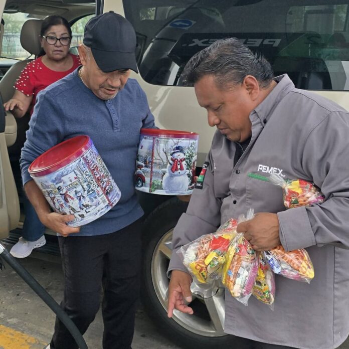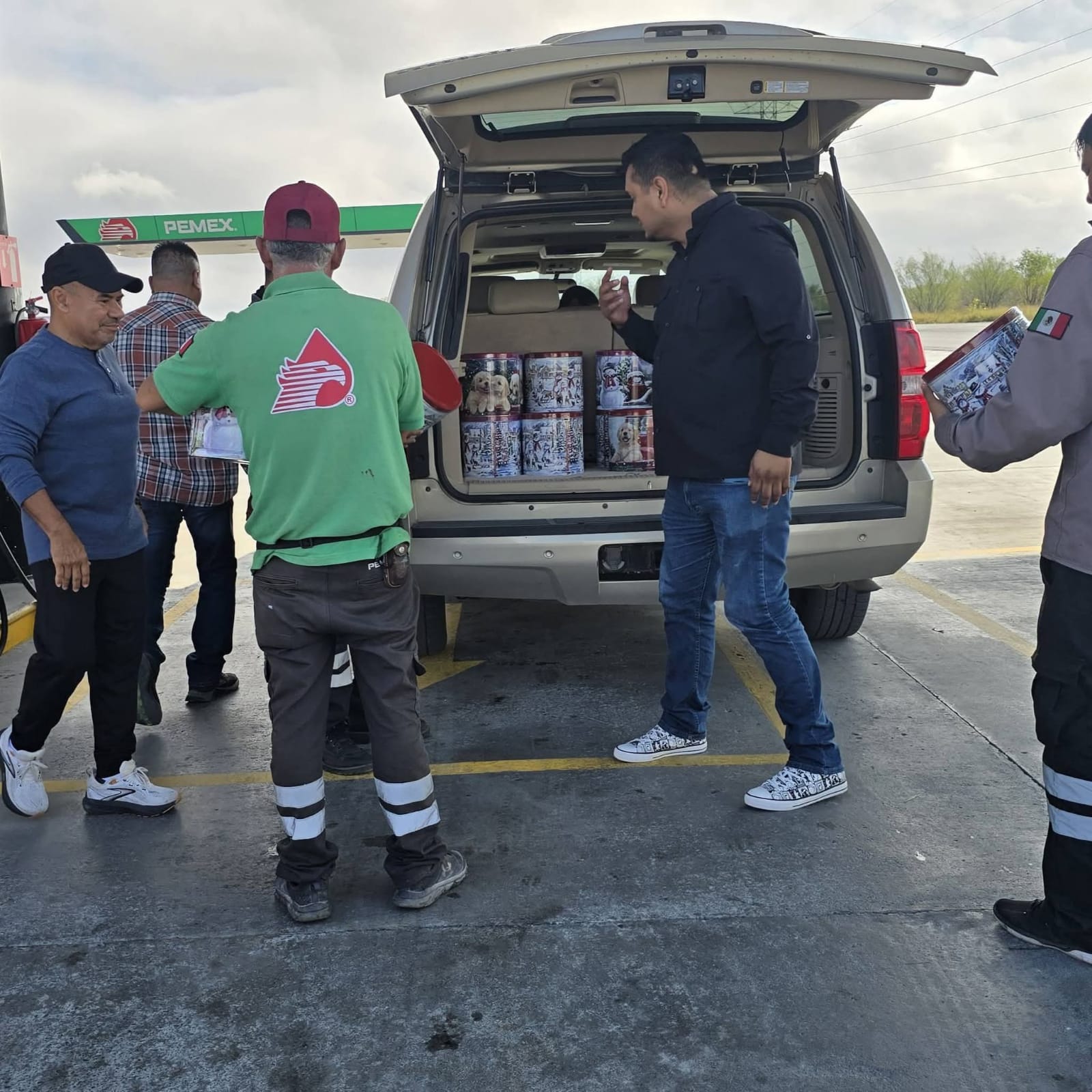 MIGUEL ALEMÁN, TAM. – Acompañado de su esposa, la Sra. Andrea Aguirre de Cortez, el presidente municipal Biol. Ramiro Cortez Barrera visitó y entregó un presente al personal de las diferentes estaciones de servicio, en la celebración de la Navidad.
