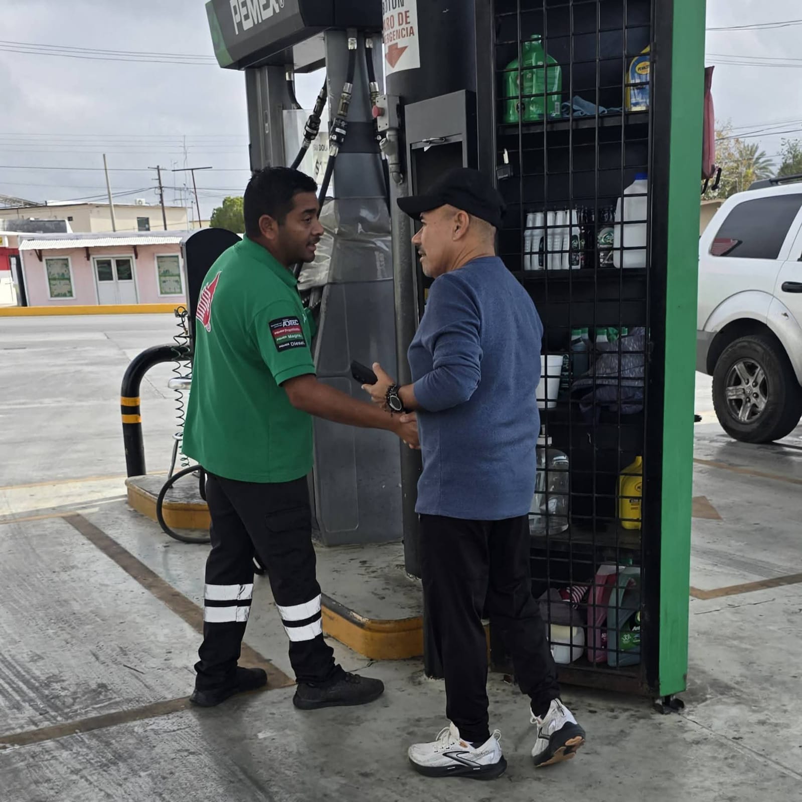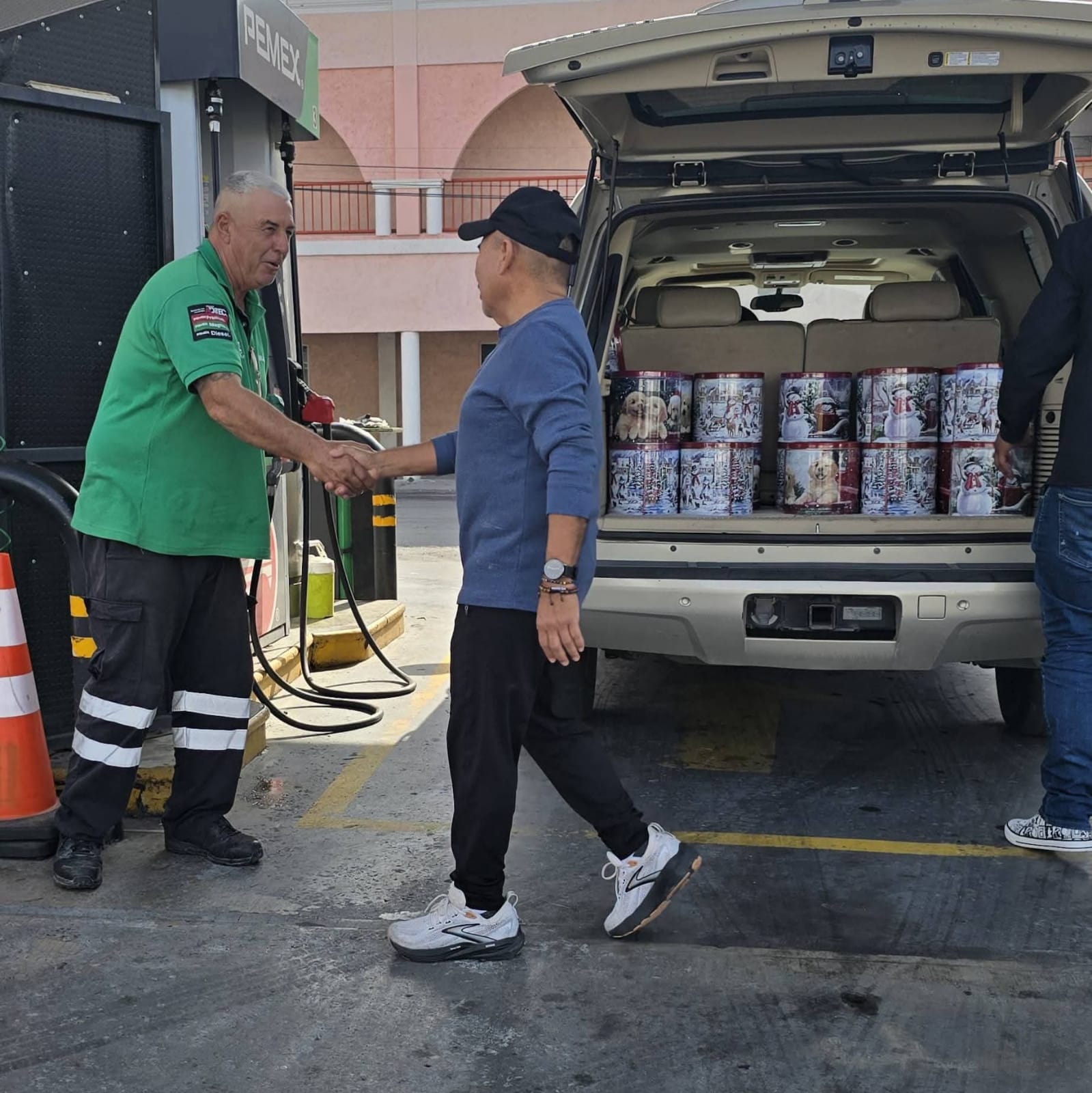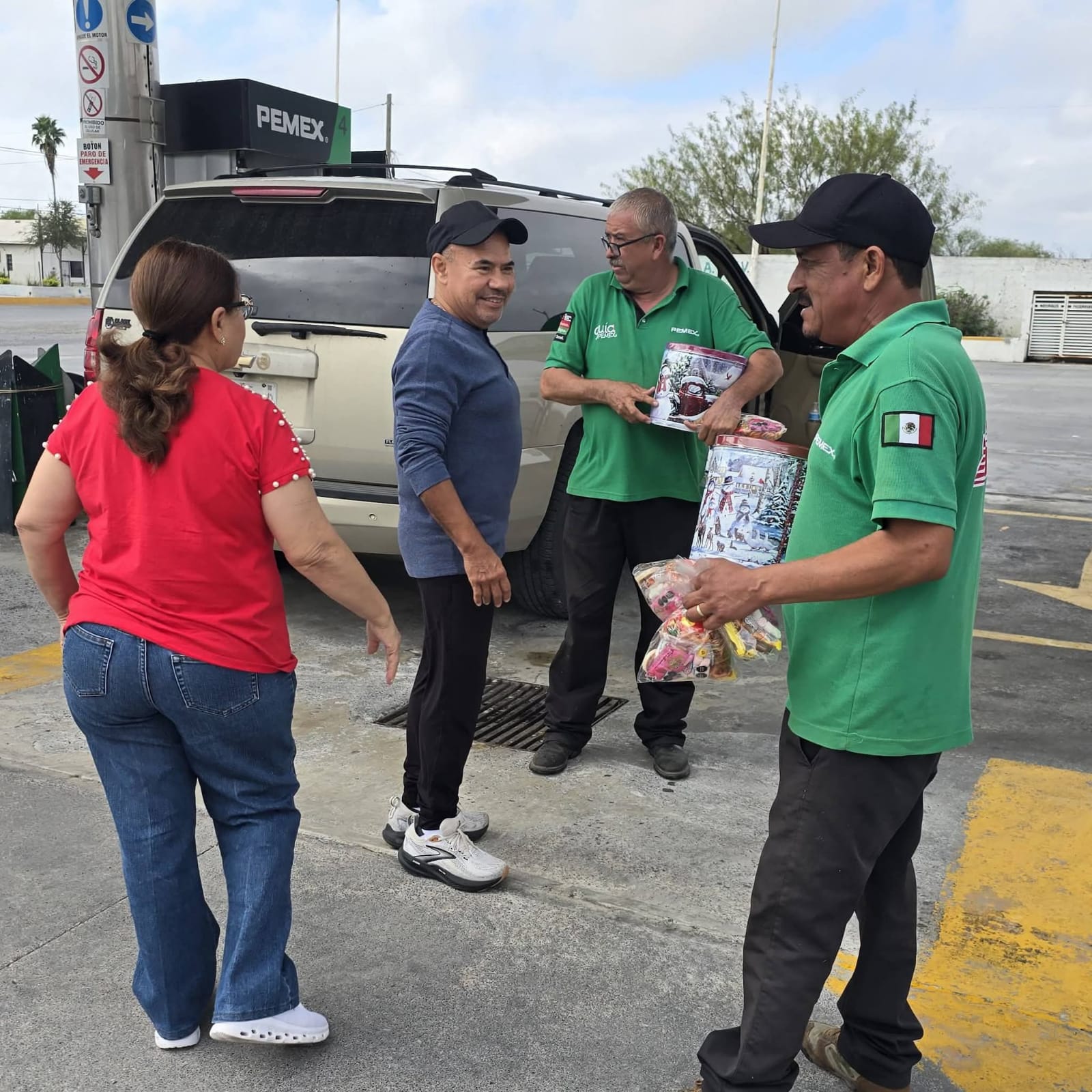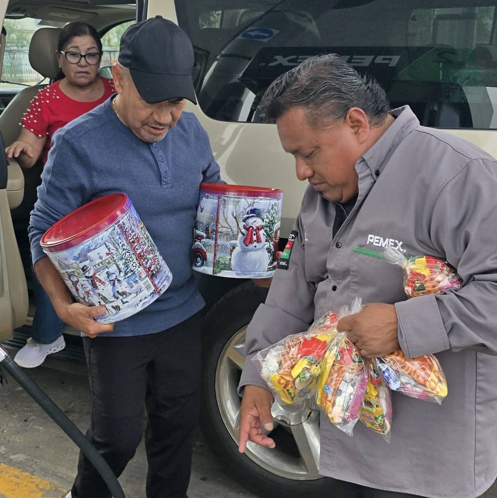 Al darles el saludo de una Feliz Navidad y Próspero Año Nuevo 2026, el Biol. Ramiro Cortez Barrera y la Sra. Andrea Aguirre de Cortez hicieron entrega de un presente, el cual ofrecieron de todo corazón a los amigos trabajadores de las estaciones de servicio.