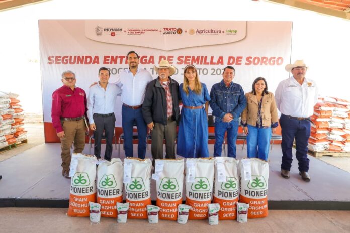 El beneficio fue entregado a 185 productores de más de 35 ejidos, que con más de 26 Toneladas de semilla de sorgo para activar 3,698 hectáreas, generando 555 empleos entre las mismas familias y vecinos que aportan su mano de obra para cosechar de manera Imparable.