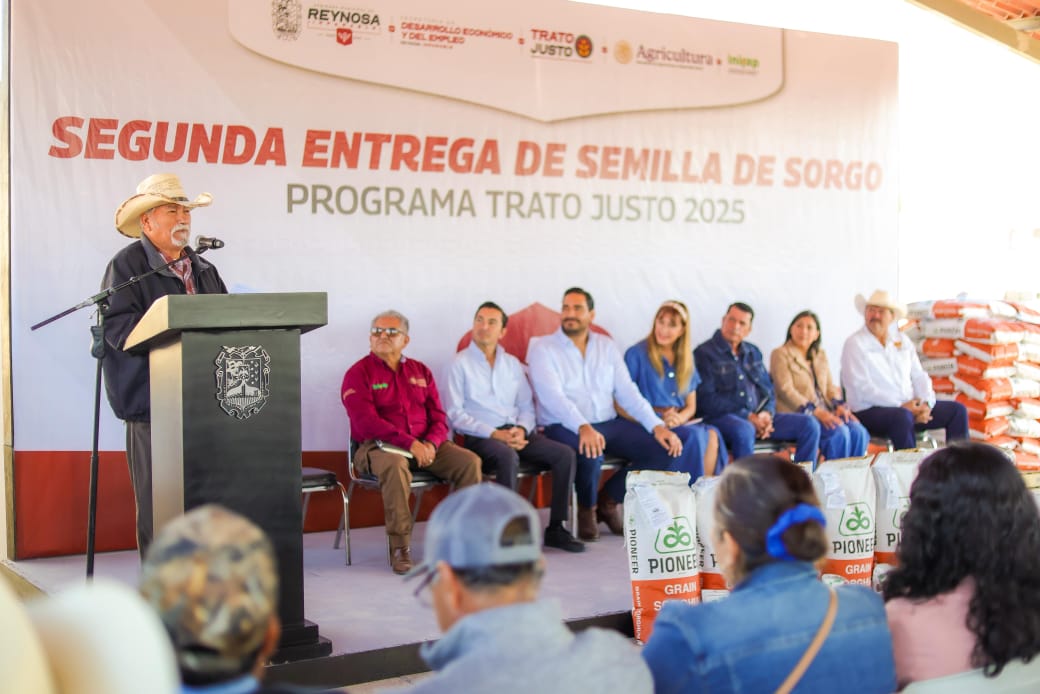 «Me uno a las palabras de agradecimiento y reconocimiento hacia Carlos Víctor Peña Ortiz, Alcalde de Reynosa, por el programa Trato Justo, que ha sido un verdadero apoyo para las familias campesinas», dijo con emoción ante familias del campo, el señor Eleodoro Quintero Ballesteros, en presencia de la Senadora Maki Esther Ortiz Domínguez y los Diputados Casandra Priscila De los Santos Flores, Claudia Alejandra Hernández Sáenz y Juan Carlos Zertuche Romero.