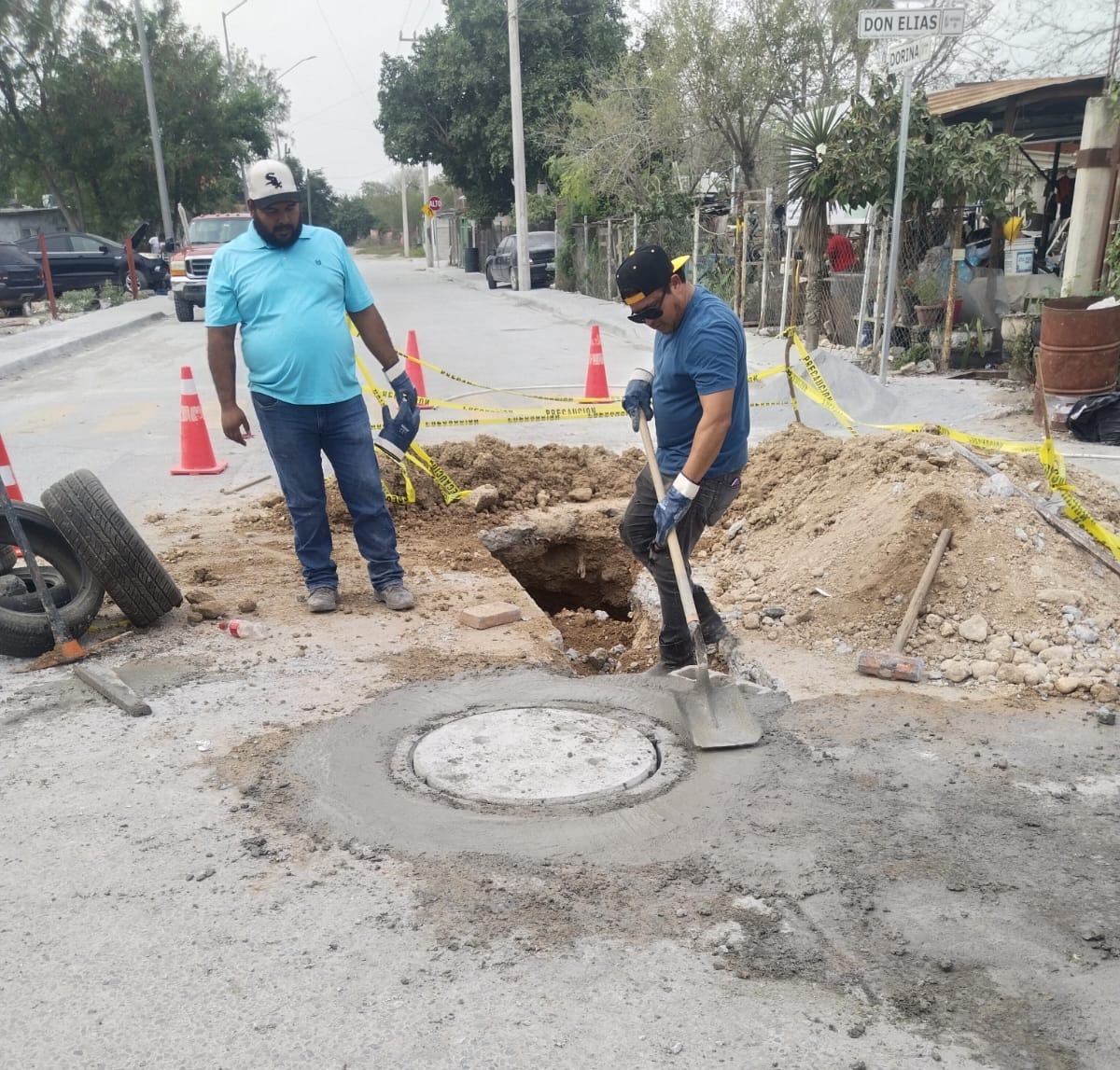 Como parte de las acciones para fortalecer la infraestructura sanitaria y urbana de la ciudad, cuadrillas de COMAPA de Reynosa llevan a cabo trabajos de instalación y reposición de brocales en diversos sectores.