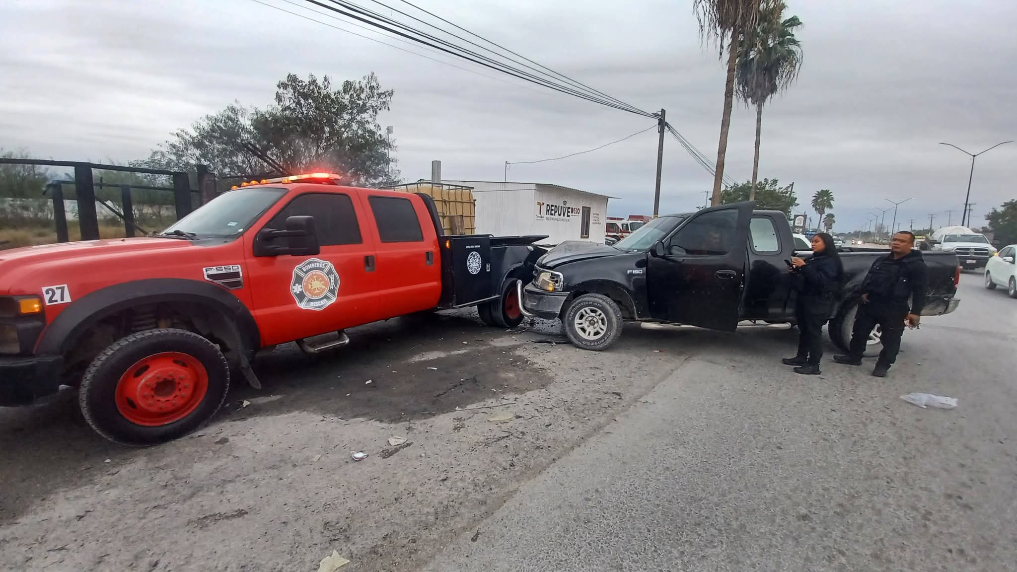 DÍAZ ORDAZ, TAM. – Un accidente vial se registró la mañana de este martes en el municipio, luego de que una camioneta Ford impactara por la parte trasera a una unidad del Cuerpo de Bomberos, mientras el personal realizaba labores de enfriamiento tras el incendio de una palapa siniestrada durante la madrugada.