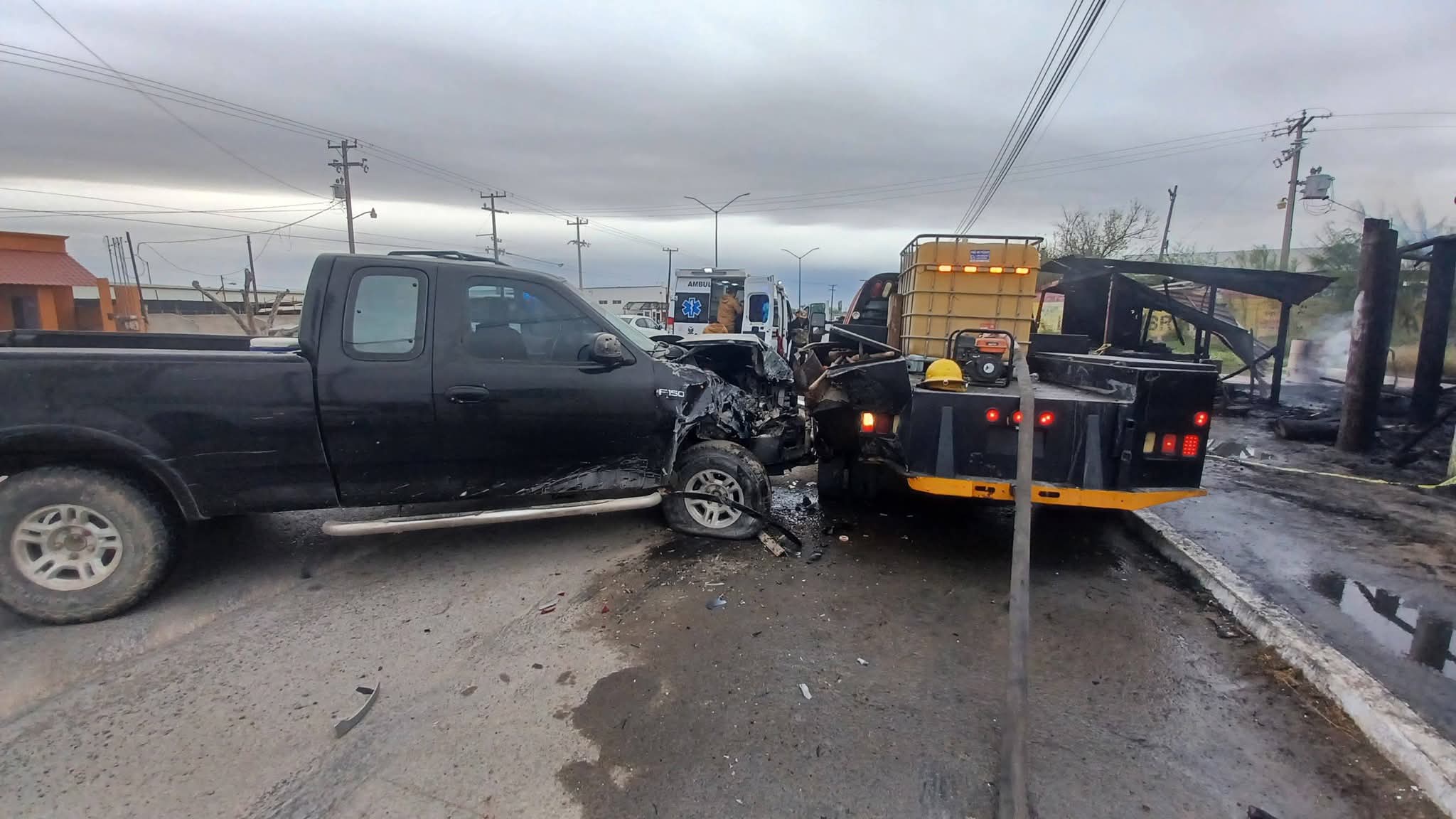 DÍAZ ORDAZ, TAM. – Un accidente vial se registró la mañana de este martes en el municipio, luego de que una camioneta Ford impactara por la parte trasera a una unidad del Cuerpo de Bomberos, mientras el personal realizaba labores de enfriamiento tras el incendio de una palapa siniestrada durante la madrugada.