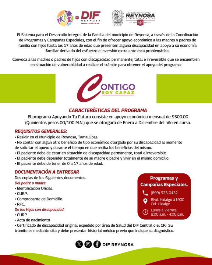 El Sistema DIF-Reynosa que preside Carlos Luis Peña Garza, dio inicio al registro de nuevo ingreso para las becas Avanzando Contigo, Apoyando Tu Futuro, Contigo Soy Capaz y Pequeños Héroes.