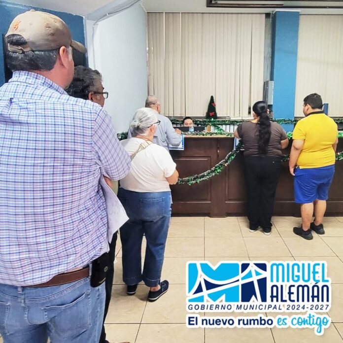 MIGUEL ALEMÁN, TAM. – Los ciudadanos de Miguel Alemán siguen acudiendo a la Presidencia Municipal para cumplir con el pago del Impuesto Predial, respondiendo al llamado del Gobierno del Biol. Ramiro Cortez Barrera, aprovechando los descuentos por pronto pago vigentes en este inicio de año.