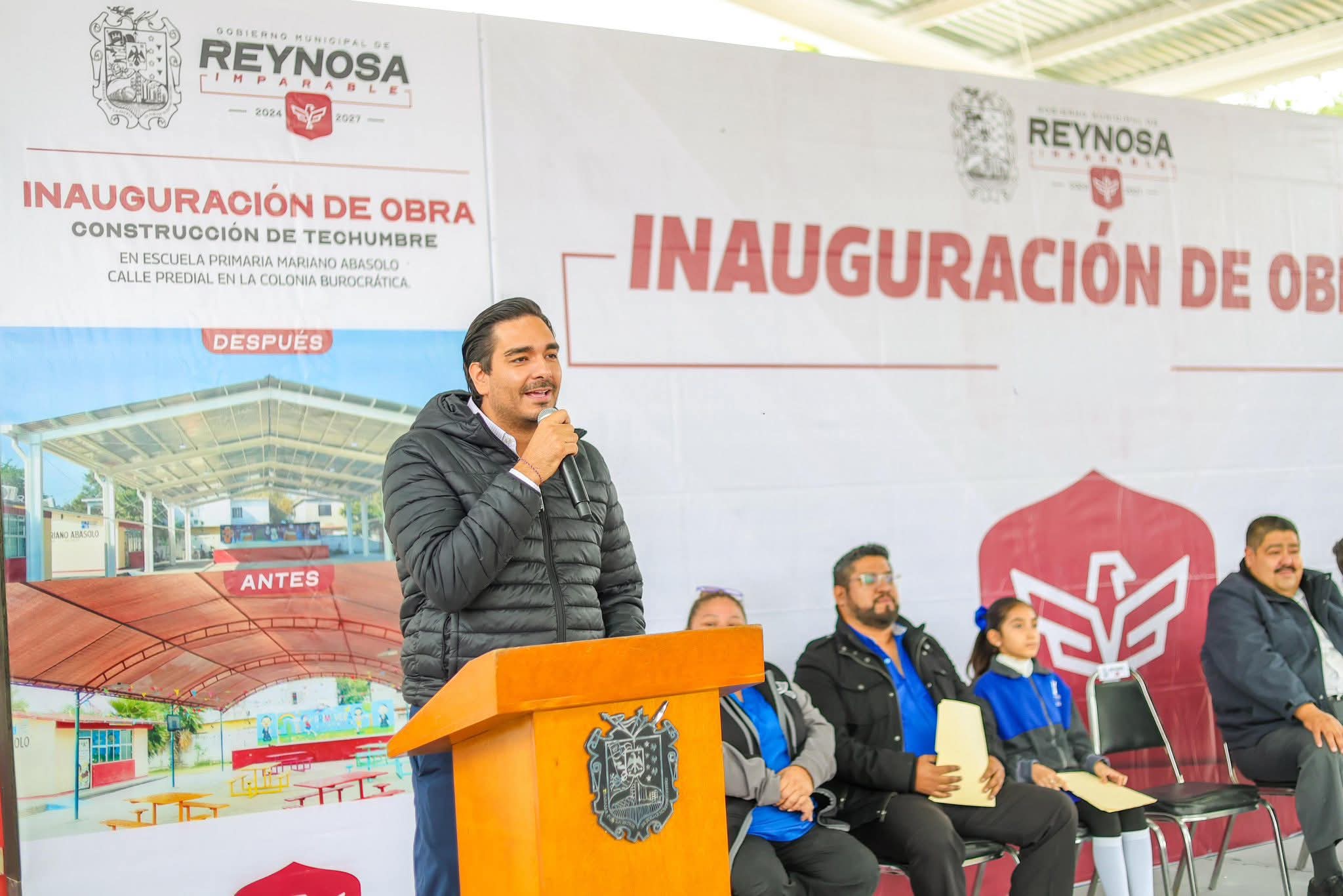 Con el objetivo de fortalecer la educación básica y mejorar las condiciones de aprendizaje de la niñez reynosense, el Alcalde Carlos Peña Ortiz encabezó la entrega de una techumbre metálica de 400 metros cuadrados en la escuela primaria Mariano Abasolo, ubicada en la colonia Burocrática.