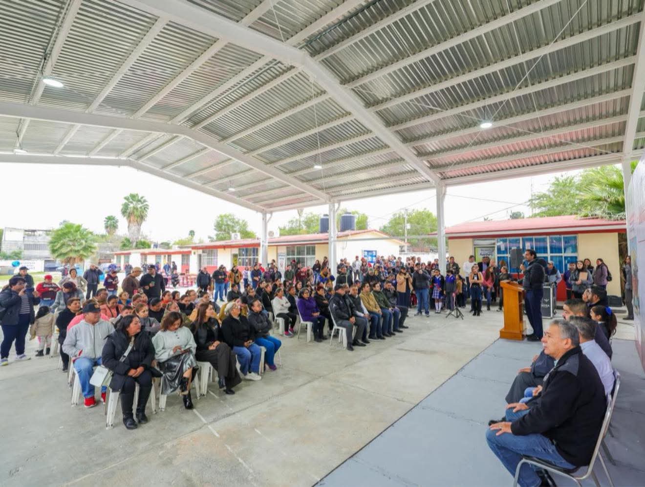 La obra, que cubre el patio cívico del plantel, representa un beneficio directo para alumnos, docentes y padres de familia, al ofrecer un espacio seguro y funcional para la realización de actividades académicas, deportivas y culturales, protegido de las inclemencias del clima.