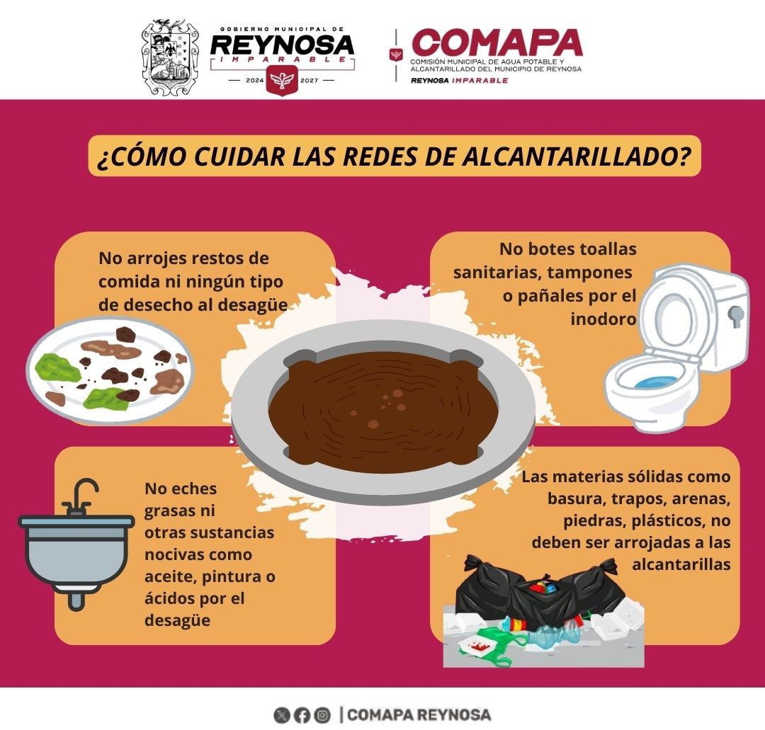 La Comisión Municipal de Agua Potable y Alcantarillado de Reynosa hace un llamado a las y los usuarios para fortalecer el cuidado del sistema sanitario, recordando que su buen funcionamiento depende en gran medida de las acciones que se realizan dentro de cada hogar.