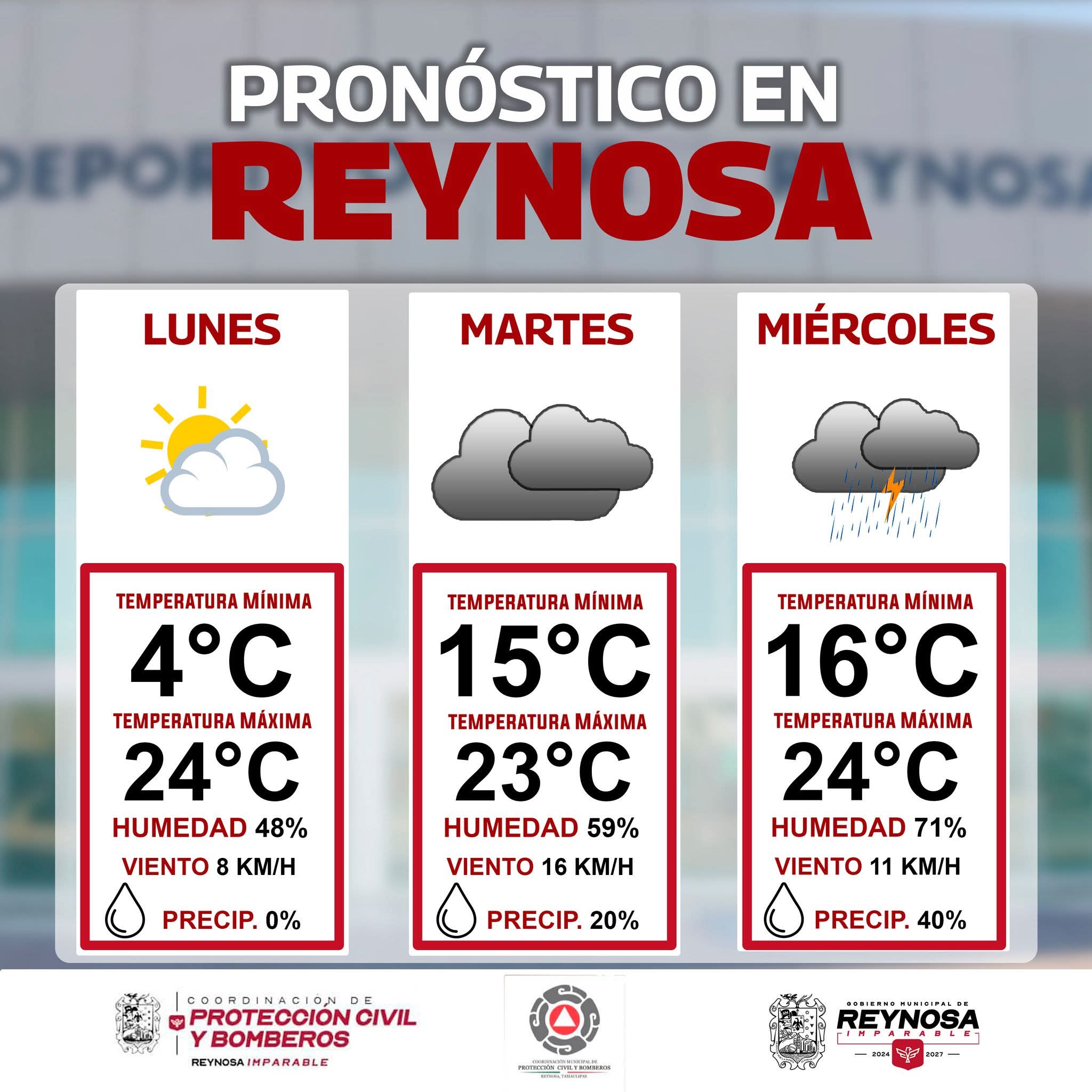 El clima, inicio de la semana presenta cielos mayormente soleados y temperaturas frescas durante la mañana, con un aumento gradual que alcanzará hasta los 24 °C, acompañados de viento del norte.
