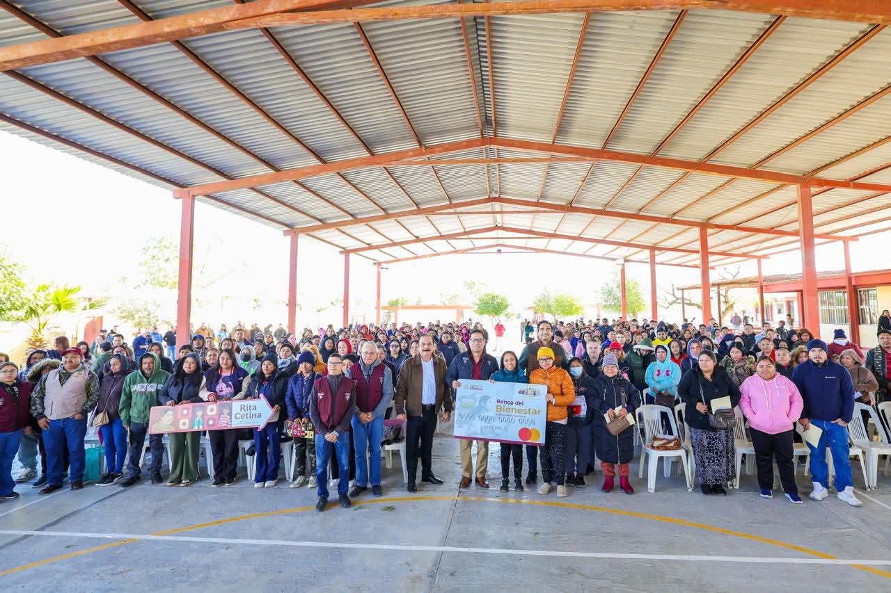 El Presidente Municipal Carlos Peña Ortiz, acompañado por el Coordinador regional del Programa de Becas, Alexander Alan Bolaños Tinoco, se reunió con padres de familia de la escuela secundaria técnica número 73, Bardomiano Montelongo Aguirre, para entregar las tarjetas de la Beca Rita Cetina de educación básica.
