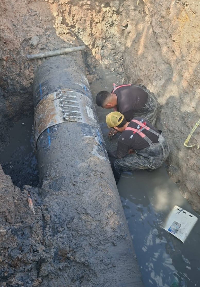 Por instrucciones del Presidente Municipal, Carlos Peña Ortiz, la Comisión Municipal de Agua Potable y Alcantarillado de Reynosa concluyó los trabajos de reparación en la tubería del Emisor del Cárcamo 1, ubicados sobre la calle Calandrias, en la colonia Manuel Tárrega.