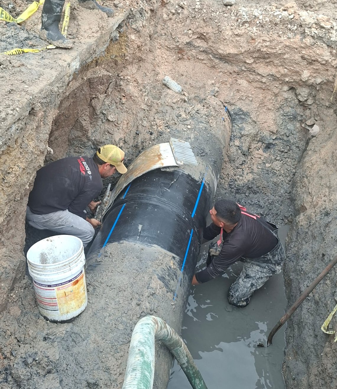 Por instrucciones del Presidente Municipal, Carlos Peña Ortiz, la Comisión Municipal de Agua Potable y Alcantarillado de Reynosa concluyó los trabajos de reparación en la tubería del Emisor del Cárcamo 1, ubicados sobre la calle Calandrias, en la colonia Manuel Tárrega.