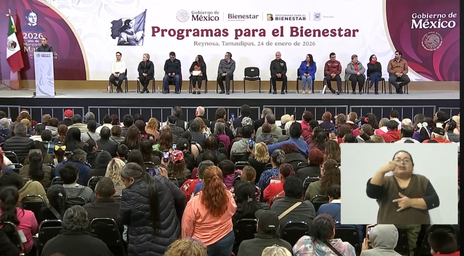 Durante la jornada, la Presidenta estuvo acompañada por autoridades estatales y municipales. Uno de los momentos más significativos del evento se registró cuando el Alcalde de Reynosa, Carlos Peña Ortiz, fue ovacionado por el público asistente durante la intervención presidencial, en una muestra de respaldo ciudadano a la gestión municipal y al trabajo conjunto con los programas federales.