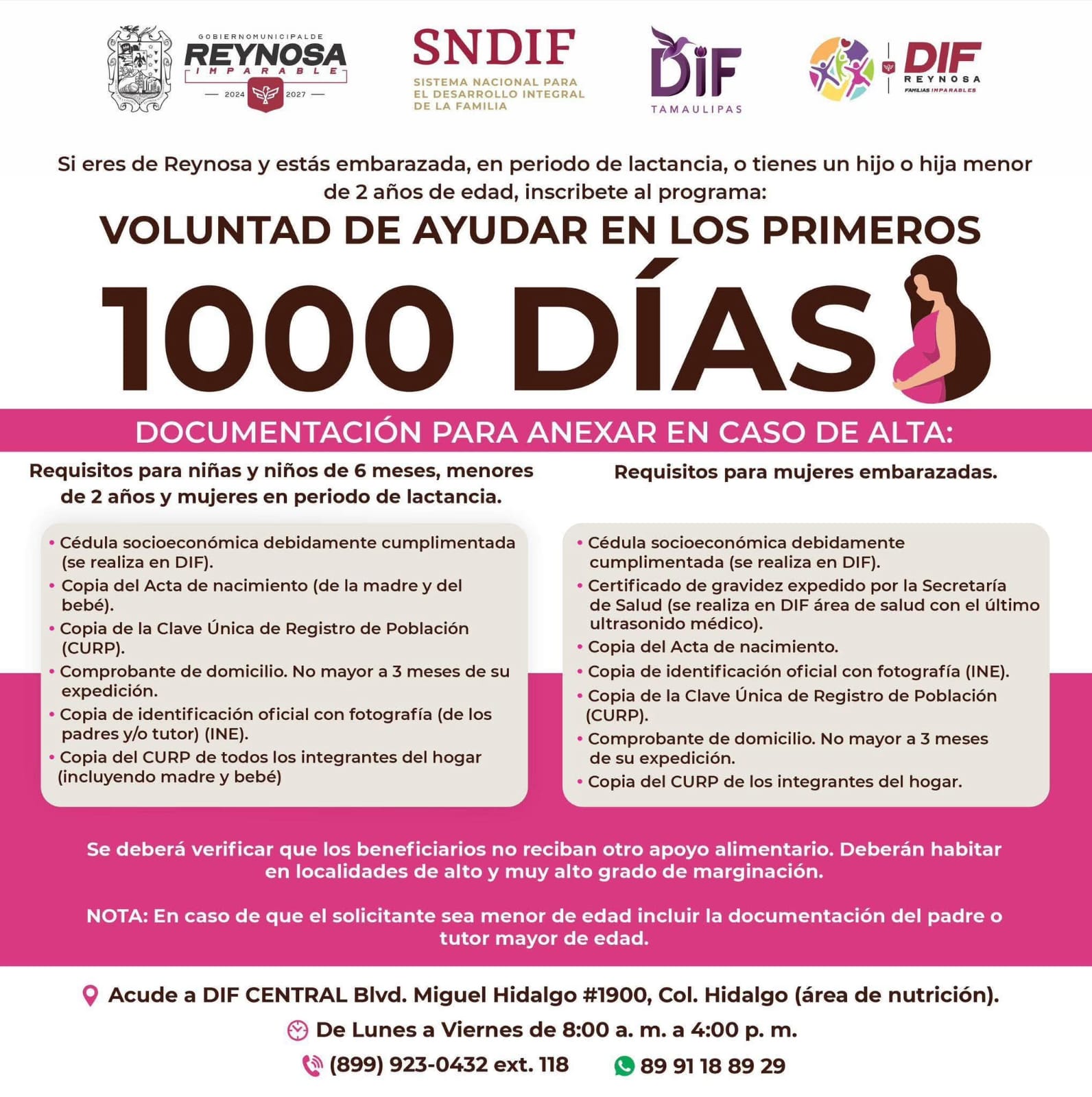 El Sistema DIF-Reynosa que preside Carlos Luis Peña Garza, invita a la ciudadanía a conocer y registrarse al programa Voluntad de Ayudar en los Primeros 1000 Días, una estrategia enfocada en fortalecer la nutrición y el desarrollo integral durante una de las etapas más importantes de la vida.