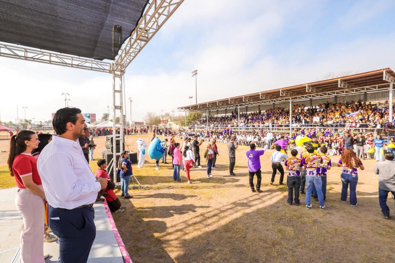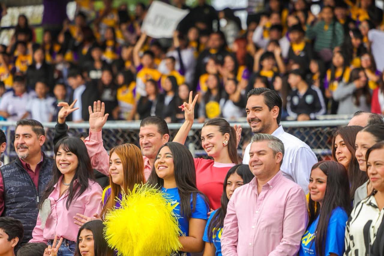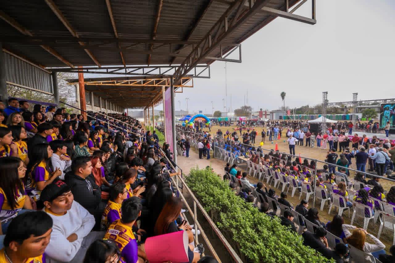 El Alcalde Carlos Peña Ortiz y su esposa la Presidenta del Voluntariado DIF-Reynosa, Alejandra Yelitza Garza, inauguraron el Festival del Amor y la Amistad 2026 com mas de 2 Mil estudiantes de Preparatoria y Universidad, en el campo de fútbol del Gimnasio de la UAT, donde destacaron la importancia de impulsar la sana convivencia y los valores entre los jóvenes.