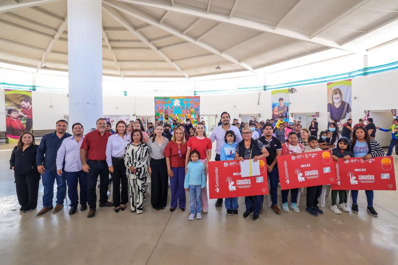 El Alcalde Carlos Peña Ortiz acompañado por su esposa la Presidenta del Voluntariado DIF-Reynosa, Alejandra Yelitza Garza, encabezó la Entrega de Becas Pequeños Héroes 2026, los apoyos económicos para niños con cáncer.