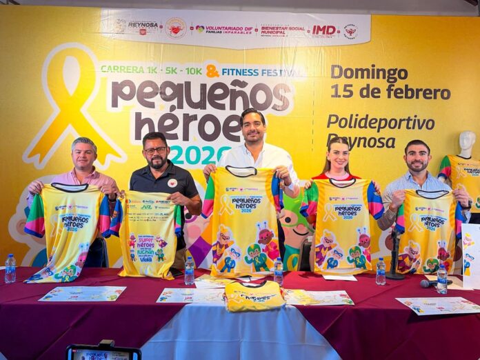 El Alcalde Carlos Peña Ortiz y su esposa Alejandra Yelitza Garza dieron a conocer, acompañados por Jorge Mar Gea, Presidente de la Fundación Iluminando Corazones A. C., detalles importantes de la Carrera 1K, 5K, 10K y Fitness Festival Pequeños Héroes 2026 Reynosa, a celebrarse este domingo 15 de febrero a partir de las 7:00 de la mañana en el Polideportivo.