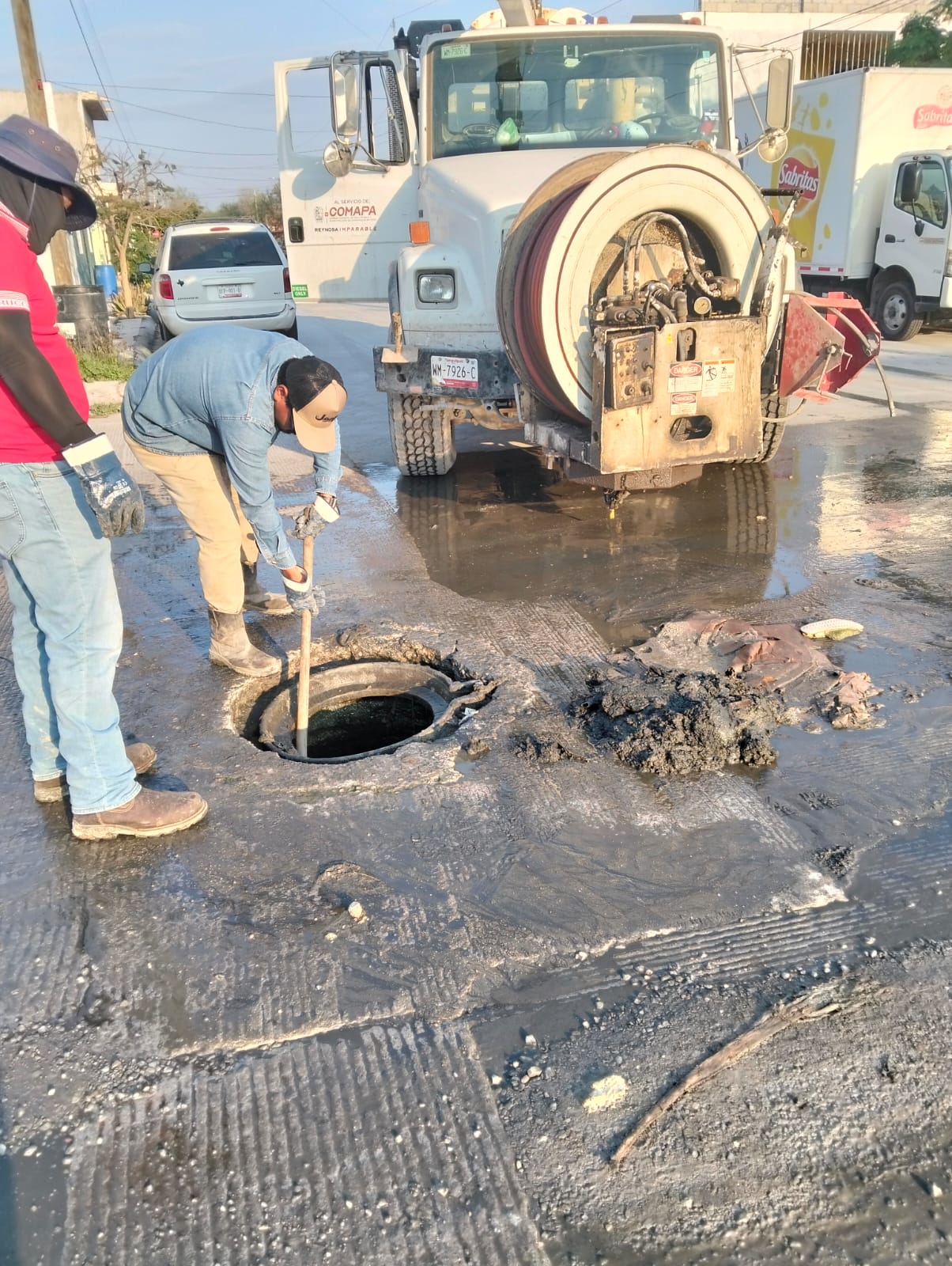 Como parte de las acciones permanentes de mantenimiento preventivo, cuadrillas de la Comisión Municipal de Agua Potable y Alcantarillado de Reynosa llevaron a cabo maniobras de sondeo en la línea general de drenaje sanitario en distintos sectores de la colonia Riberas del Carmen.