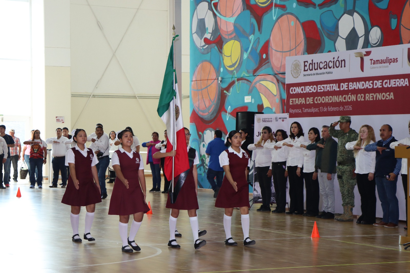 Con el objetivo de fortalecer los valores cívicos, el respeto a los símbolos patrios y la formación integral de las y los estudiantes, el Gobierno de Reynosa impulsó la realización del Concurso Estatal de Bandas de Guerra y Escoltas, etapa de Coordinación 02 Reynosa.