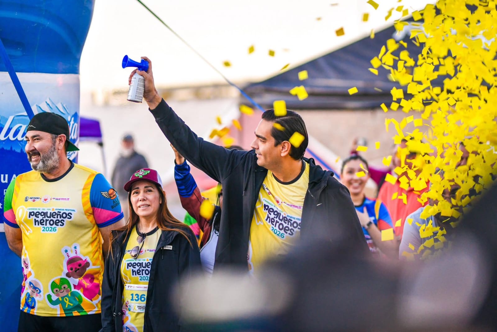 La Carrera 1K, 5K, 10K, Fitness Festival Pequeños Héroes 2026 fue inaugurada por el Alcalde Carlos Peña Ortiz y su esposa Alejandra Yelitza Garza, la mañana de acompañados por el Diputado Local Juan Carlos Zertuche Romero y por el Presidente de la Fundación Iluminando Corazones a Niños con Cáncer, una competencia hecha con solidaridad y amor que fortalece el tejido social de nuestra comunidad.