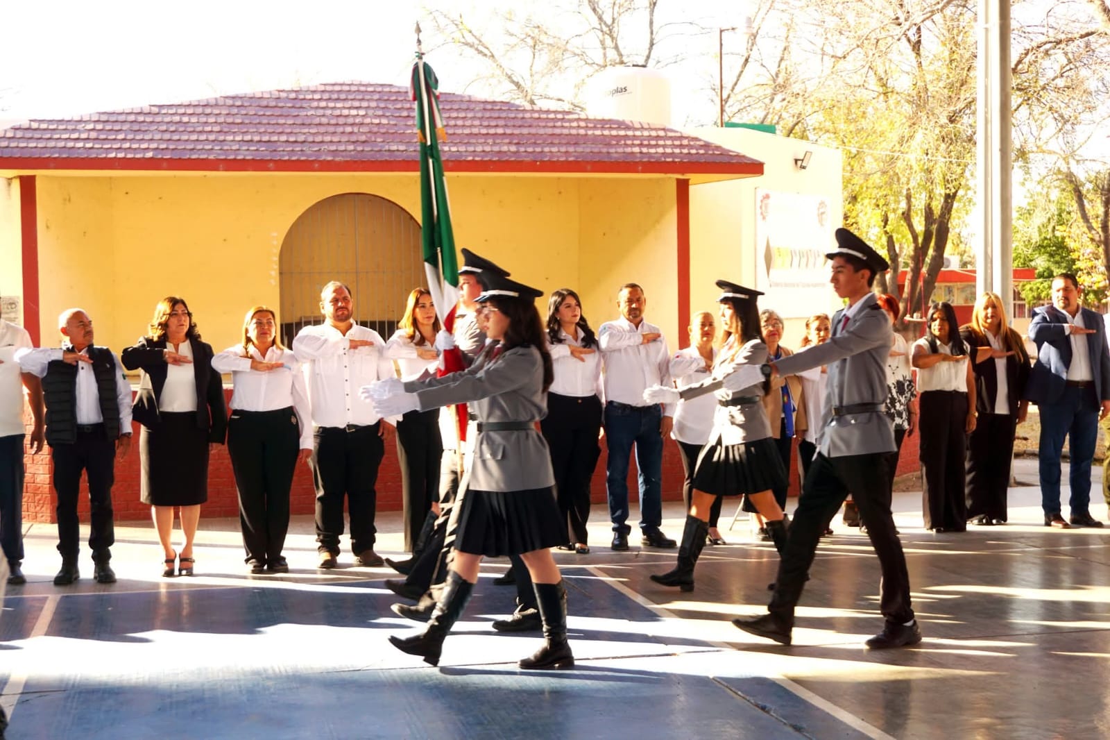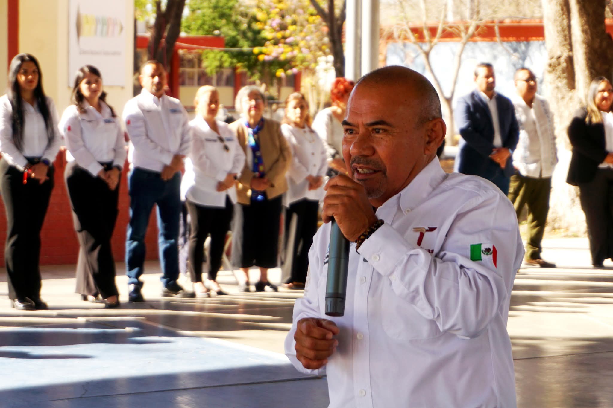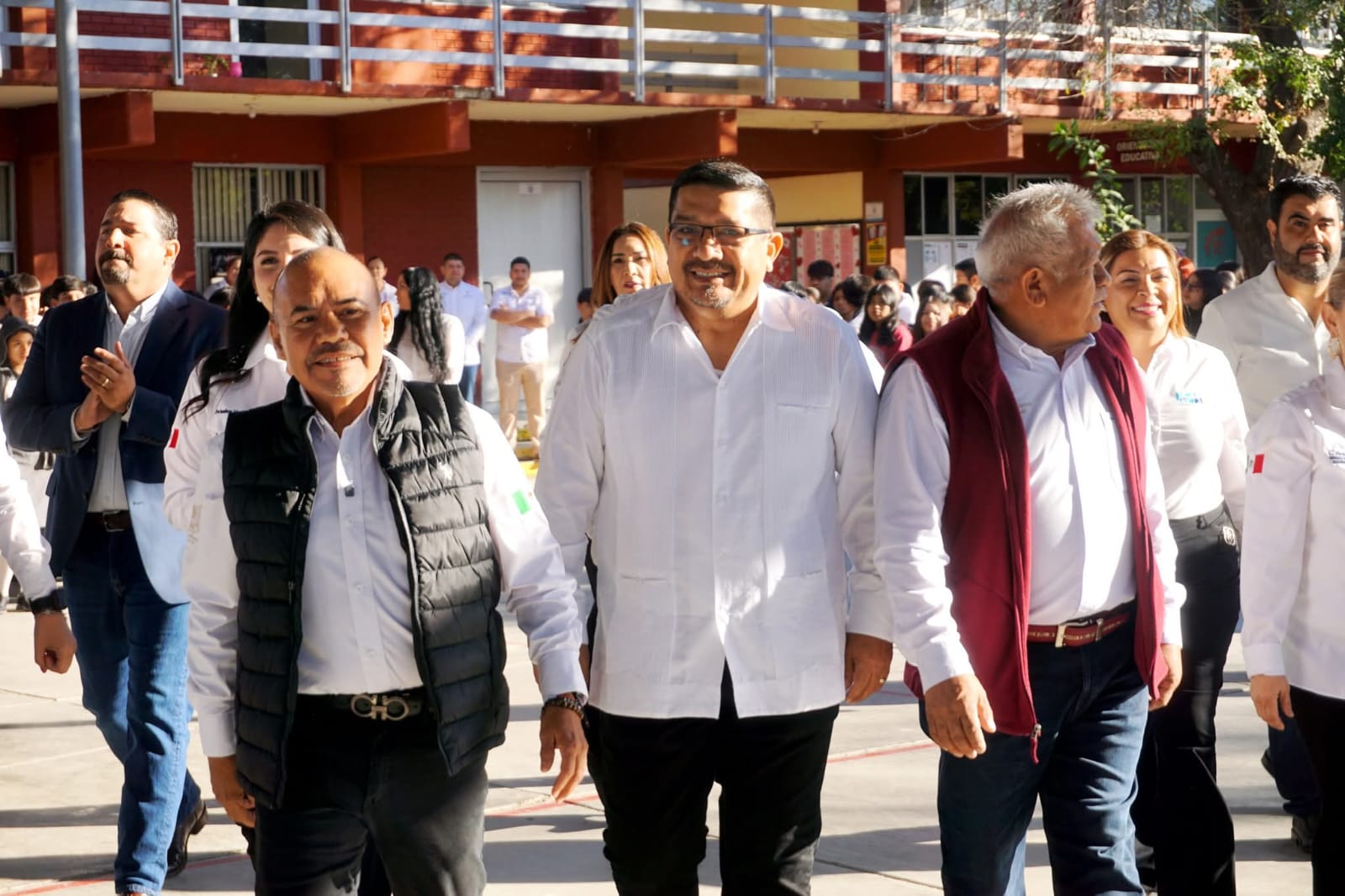 El edil estuvo acompañado por integrantes del Cabildo, así como por la Alcaldesa del municipio vecino de Camargo, Ernestina Perales Ortiz, y el director del plantel, Ing. Sergio Ivan Perez Siller, entre otras personalidades del ámbito educativo y gubernamental.