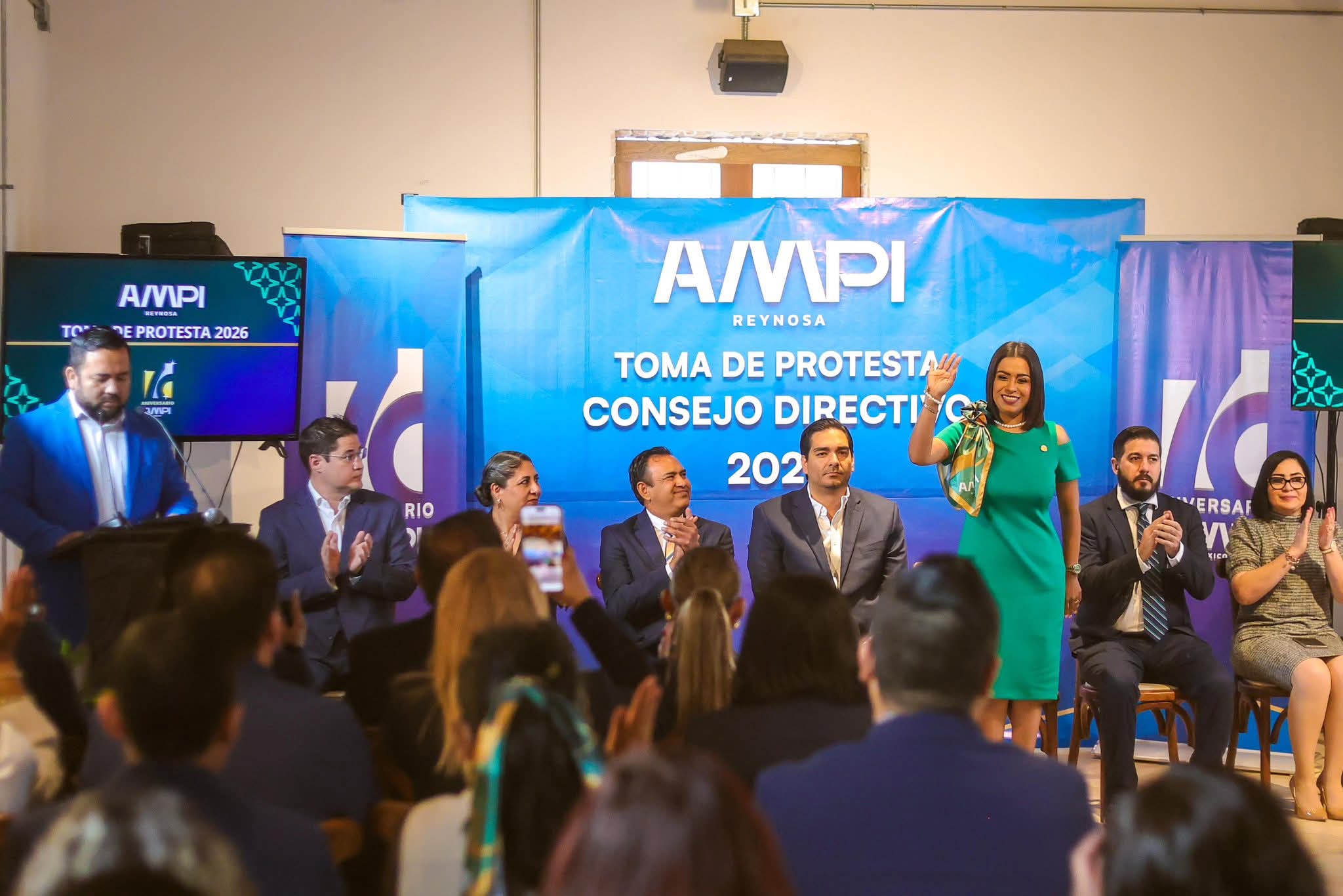 El Alcalde Carlos Peña Ortiz presidió junto a la dirigente nacional de la Asociación Mexicana de Profesionales Inmobiliarios, Jenny Althair Rivas Padilla, la Toma de Protesta del Consejo Directivo 2026 AMPI Reynosa que encabeza Sabino Franco Reyes en este nuevo período anual del organismo.