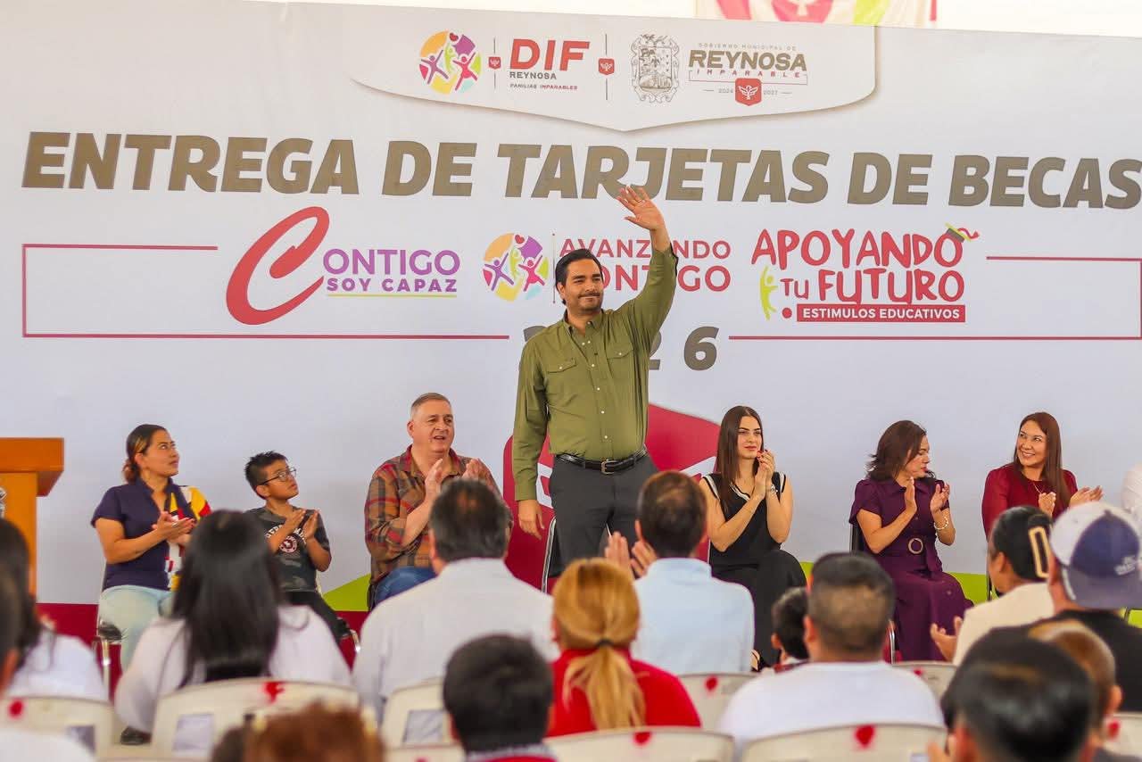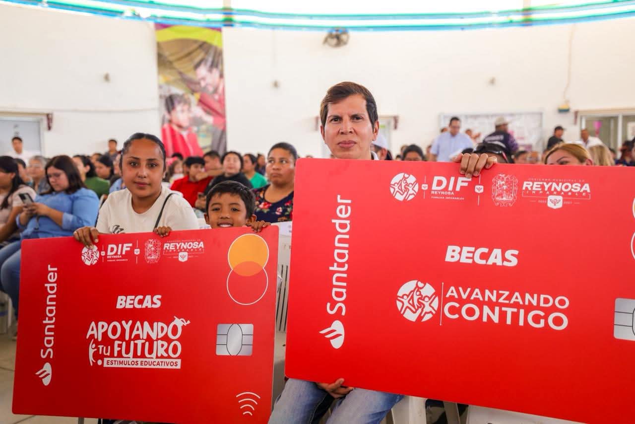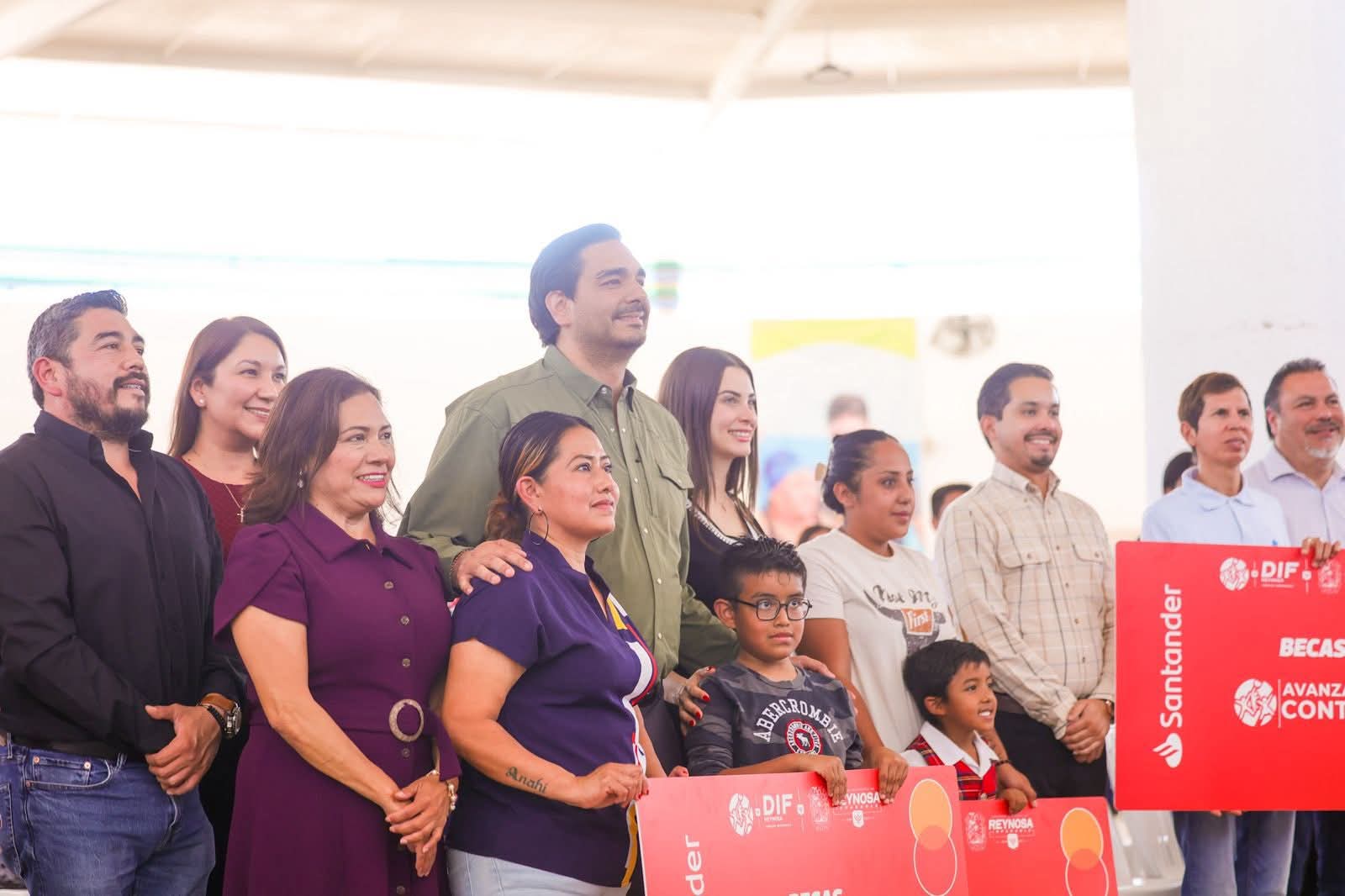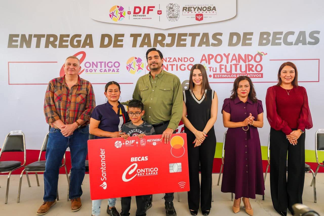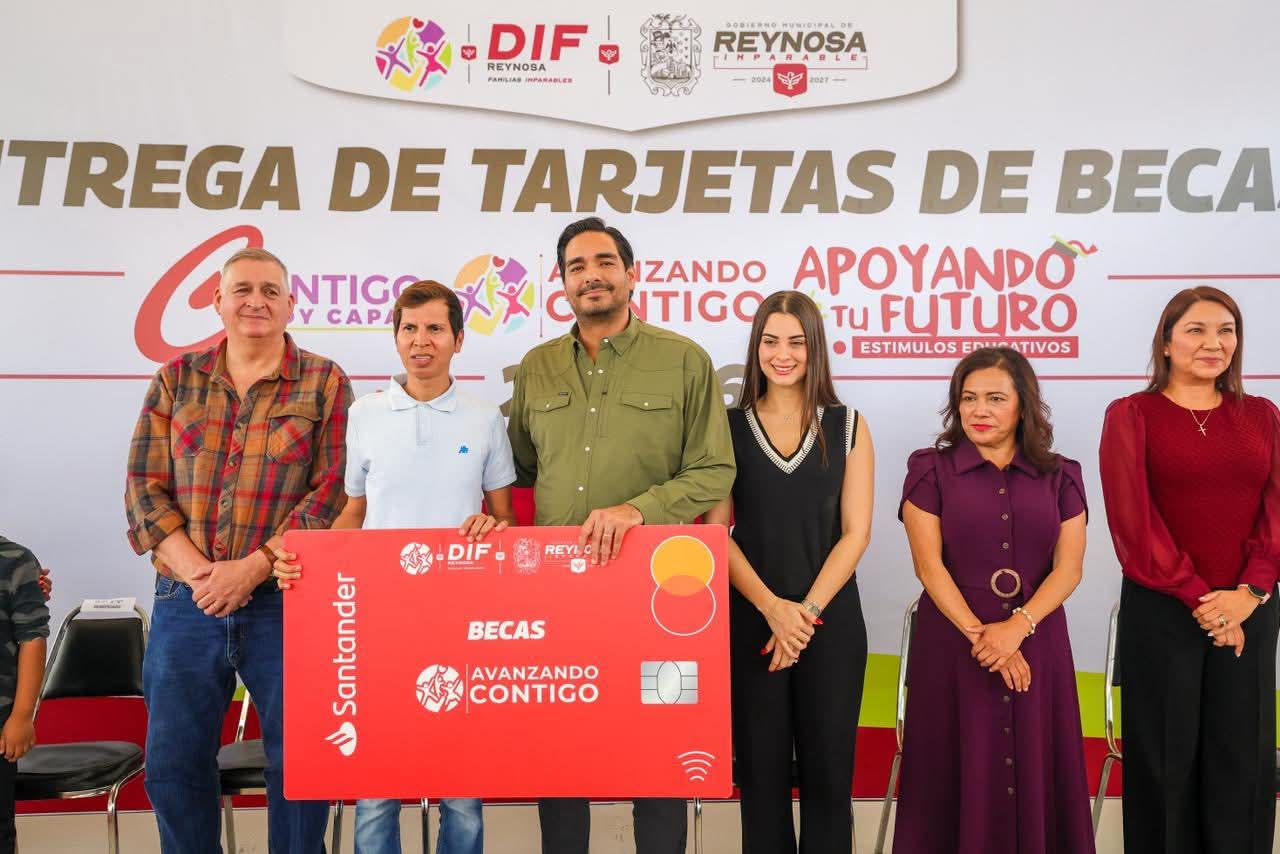El Alcalde Carlos Peña Ortiz y la Presidenta del Voluntariado DIF-Reynosa, Alejandra Yelitza Garza, junto con el Presidente del Patronato, Lic. Carlos Luis Peña Garza, entregaron apoyos de alto contenido social, las Tarjetas de Becas «Contigo Soy Capaz, Apoyando Tu Futuro y Avanzando Contigo.