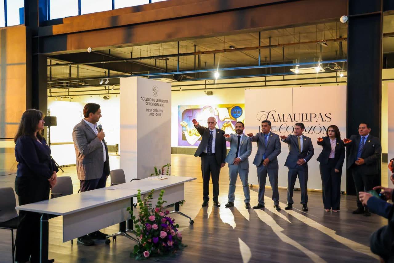 La Mesa Directiva 2026-2028, del Colegio de Urbanistas de Reynosa A. C. rindió protesta ante el Presidente Municipal Carlos Peña Ortiz, a quien le fue conferido el honor del acto celebrado en el Museo del Ferrocarril, Historia, Arte y Maquila de Reynosa, MUFHAM.