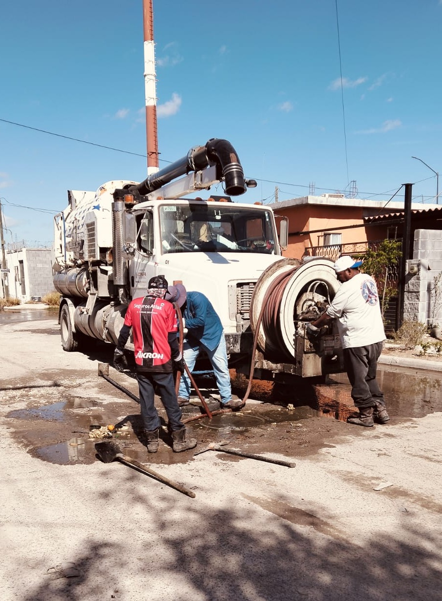 Atendiendo las indicaciones del alcalde, Carlos Peña Ortiz, la Comisión Municipal de Agua Potable y Alcantarillado de Reynosa llevó a cabo maniobras de sondeo de línea general de drenaje sanitario y limpieza de pozos de visita en calles del fraccionamiento Los Almendros, con el objetivo de mantener bajos los niveles en la red y prevenir encharcamientos y derrames de aguas residuales en el sector.