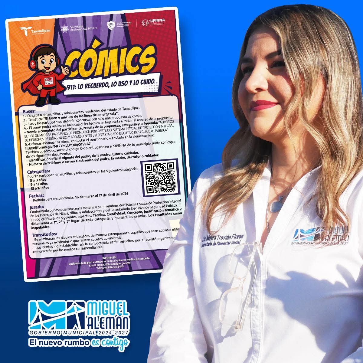 MIGUEL ALEMÁN, TAM. -El Gobierno del Biol. Ramiro Cortez Barrera, a través de la Secretaría de Bienestar Social, a cargo de la Lic. Mayra Treviño Flores, invita a las niñas, niños y adolescentes a participar en el Concurso de Comic 2026 “Lo Recuerdo, lo Uso y lo Cuido”, el cual se realiza del 16 de marzo al 17 de abril.