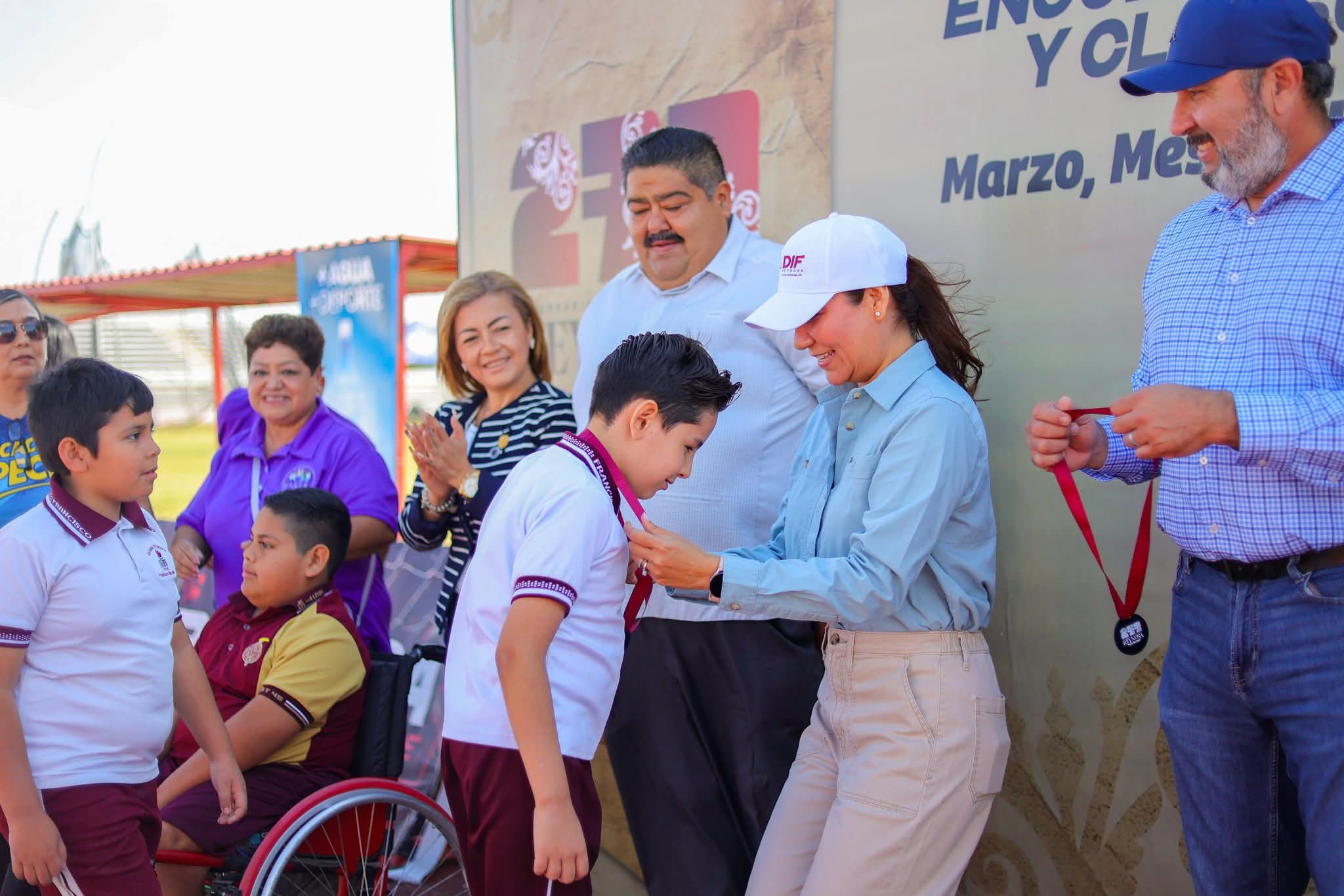 En el evento, se realizó la entrega de medallas a los alumnos participantes, reconociendo su esfuerzo y entusiasmo, encabezando la supervisora de la Zona Escolar 08 de Educación Especial, Anabel Mayela de la Cruz Arredondo, el Director General del Instituto Municipal del Deporte, Saúl Soto Castro, el regidor de la Comisión del Deporte en el Cabildo, Juan Joaquín Ramírez Martínez, la directora de Coordinación de Imagen del Modelo Social de Discapacidad, María del Refugio Anzaldúa Gutiérrez, el alumno Jesús Alexis Rodríguez Guajardo, de la Escuela Secundaria Inclusiva No. 45 “Ignacio Manuel Altamirano”, autoridades de Educación Municipal y del Centro Regional de Desarrollo Educativo.