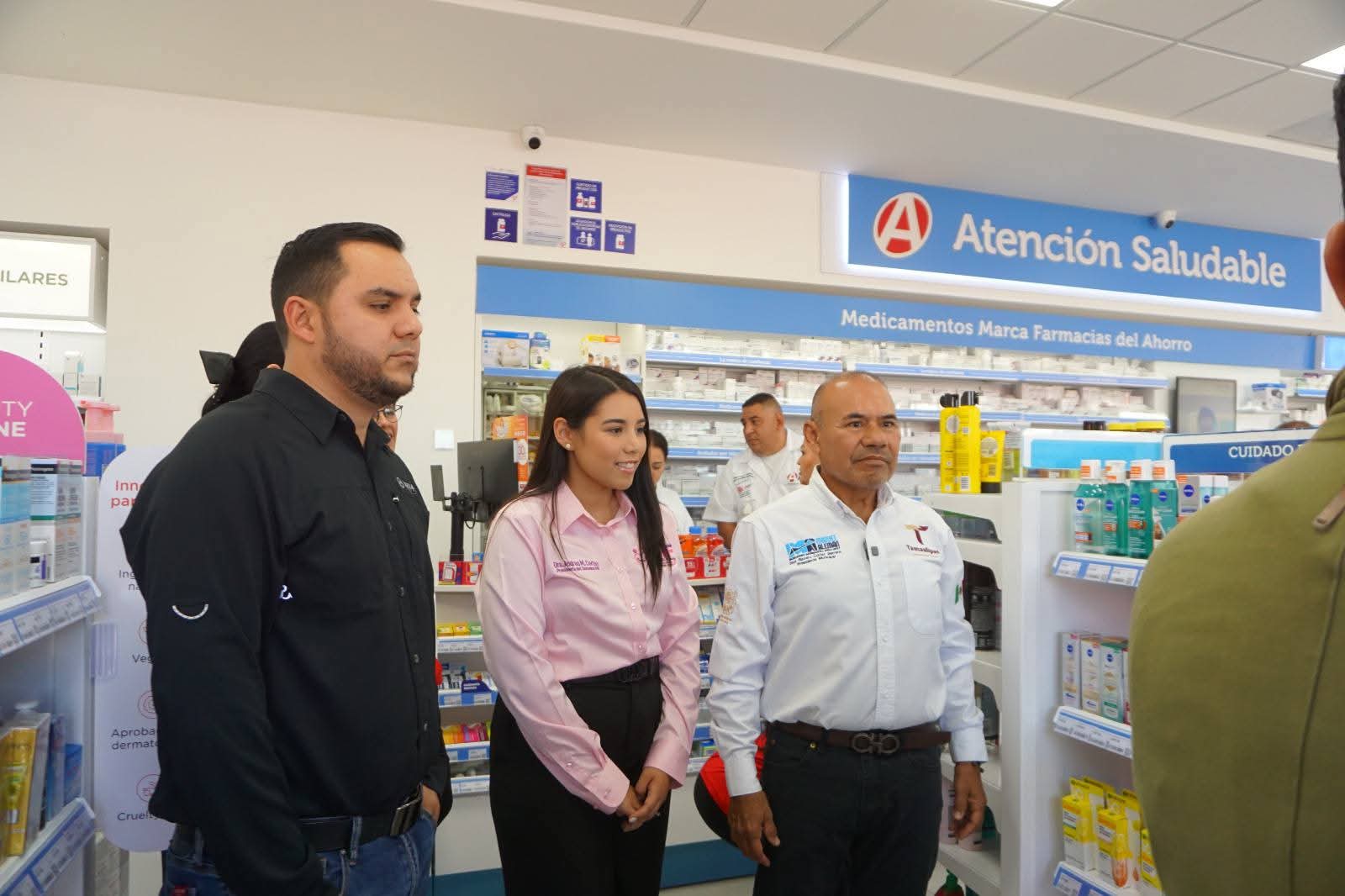 MIGUEL ALEMÁN, TAM. – En un acto que refleja el crecimiento del sector salud en la región, el Alcalde Ramiro Cortez Barrera encabezó este viernes la inauguración de la sucursal de Farmacias del Ahorro en el municipio, acompañado por autoridades locales, representantes de la empresa y miembros de la comunidad.