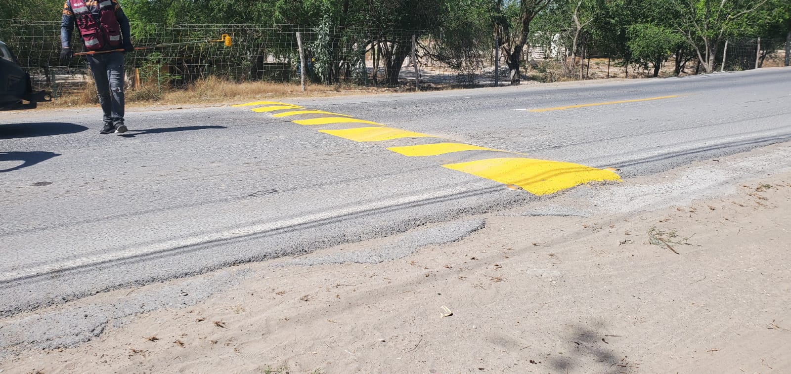 – Pintura de topes de concreto en la entrada al centro recreativo.