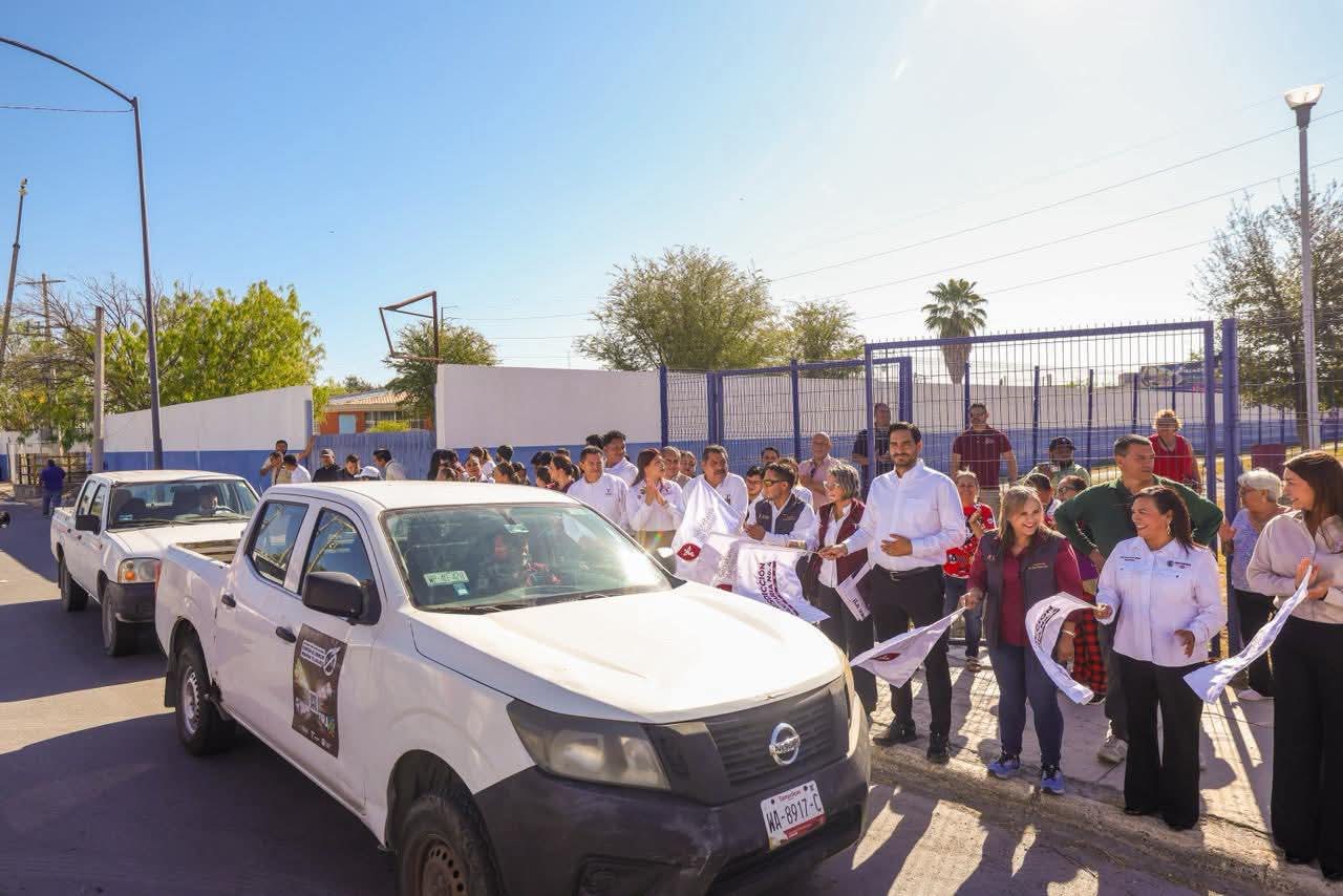 Con un banderazo el Alcalde y la funcionaria estatal dieron inicio a la campaña de fumigación que incluye los recorridos con unidades utilitarias y motomochilas para llegar a todos los rincones de las colonias.