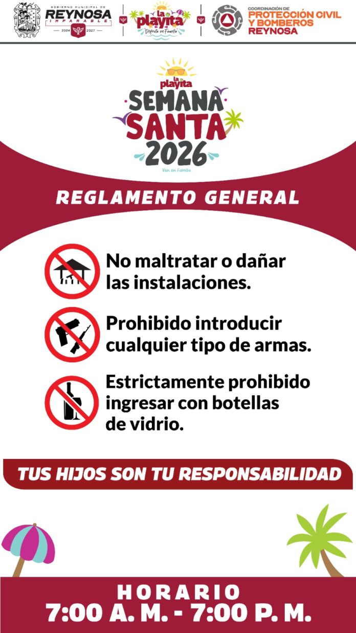 El Gobierno Municipal del Alcalde Carlos Peña Ortiz Reynosa, realizó una inspección en la Playita de Reynosa para verificar los anuncios preventivos a través de la Coordinación de Protección Civil y Bomberos, a cargo de Javier Iván Lam Cantú, quien dialogó con los padres de familia que visitan el lugar.