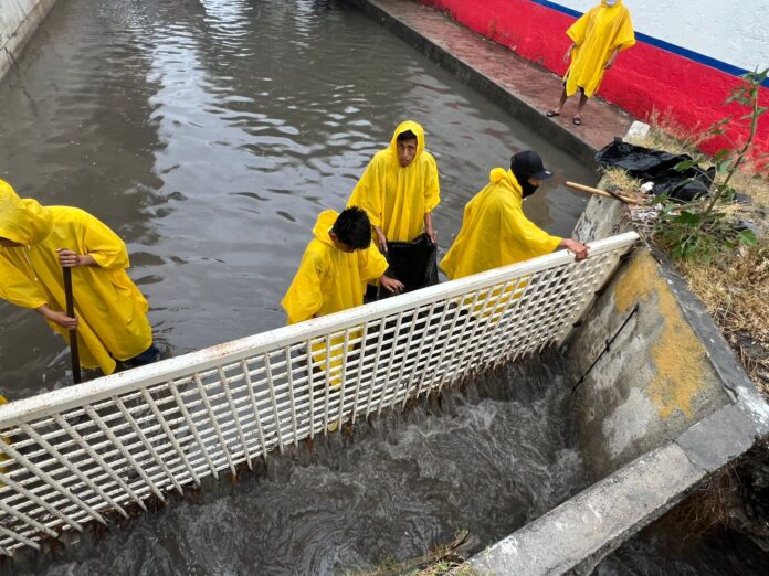 Como parte de las acciones prioritarias, se lleva a cabo la limpieza de rejillas pluviales con el objetivo de evitar obstrucciones que agraven las inundaciones. Asimismo, con el apoyo de equipos operativos del Ayuntamiento y de la Comisión Municipal de Agua Potable y Alcantarillado (COMAPA), se trabaja en el desagüe de zonas que presentan acumulación de agua.