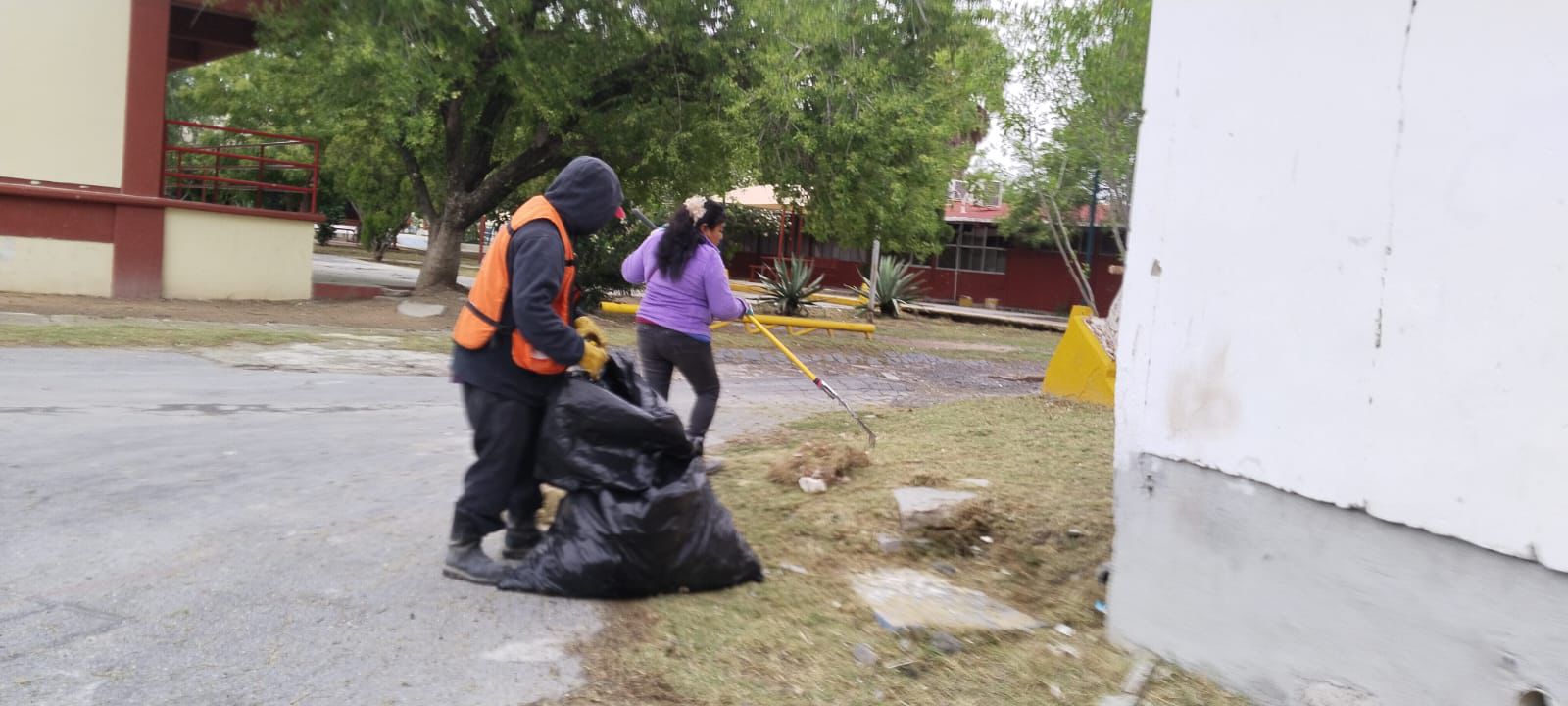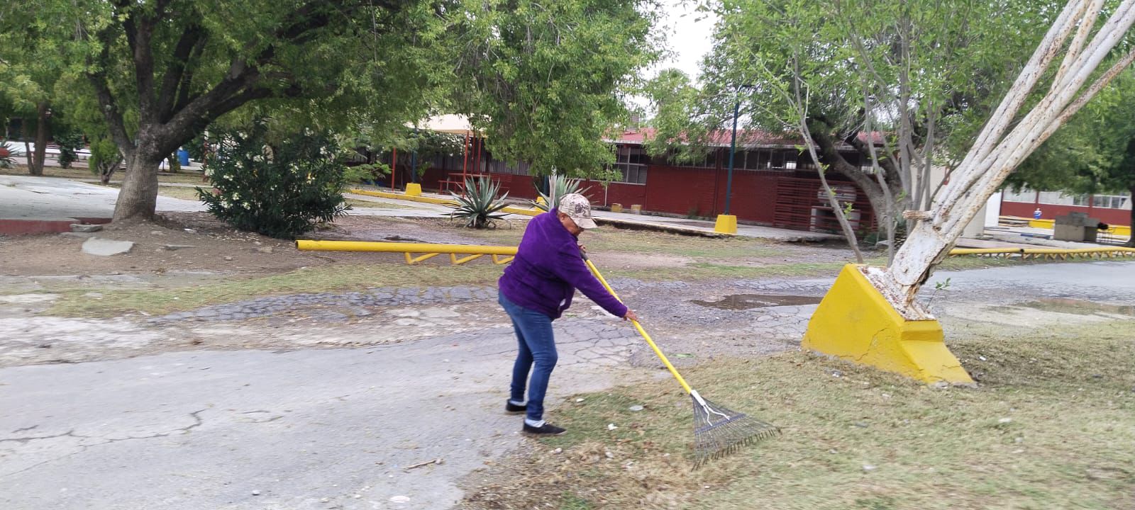 Autoridades locales informaron que este lunes 6 de abril, cuadrillas de Servicios Públicos realizan labores simultáneas en áreas estratégicas, entre ellas la plaza de la colonia Ampliación Riberas del Carmen, así como en los drenes ubicados en las colonias Arboledas y 16 de Septiembre.