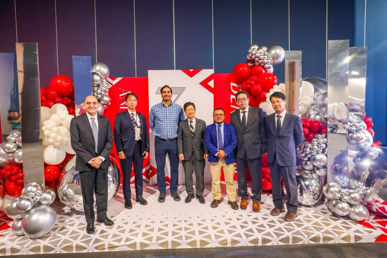 Vicepresidente de Denso Ten TNMX; Jimpei Uohashi, Presidente de TNAM; Erick Meza, Gerente de Calidad, Toshio Kawabata, Gerente del Departamento de Contabilidad; Raúl Saucedo, Director de DNMX y empleados de la maquiladora.
