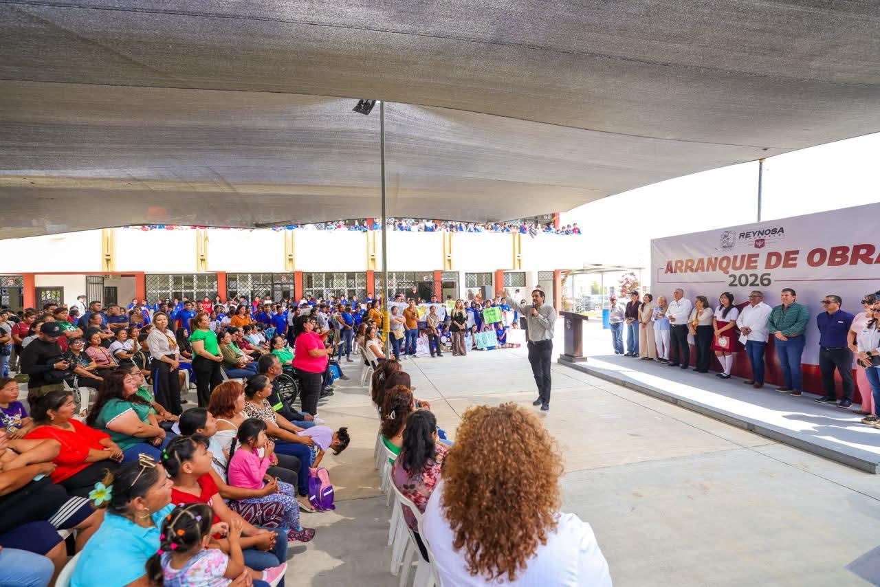 Durante el arranque de obra, el Presidente Municipal destacó que invertir en infraestructura escolar es invertir directamente en el futuro de Reynosa, garantizando que niñas, niños, adolescentes y jóvenes cuenten con instalaciones adecuadas para su desarrollo académico, deportivo y cultural.