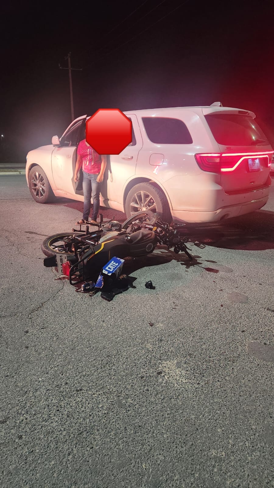 De acuerdo con el reporte emitido por Eduardo Rodríguez Cuéllar, titular de Protección Civil, el percance fue notificado a las 21:10 horas, involucrando a una camioneta y una motocicleta. Tras el impacto, una persona resultó con golpes leves que no requirieron traslado urgente a un hospital.